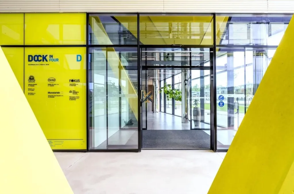Budova DOCK IN FOUR je moderní projekt disponující vynikající lokalitou podél dvou slepých ramen Vltavy a v těsné blízkosti centra města. Kancelářské prostory jsou variabilní a budova je tak vhodná pro firmy různých velikostí. Každý nájemce má k dispozici své oddělené zázemí včetně vlastního vstupu, kuchyňky a toalety. Kanceláře jsou vybaveny nejmodernější technikou, elektronicky kontrolovaným vstupem do jednotlivých pater prostřednictvím čipových karet s přístupem 24/7 a přítomna je také profesionální ostraha. Reprezentativní recepce je základem každé úspěšně fungující firmy. V docházkové chůzi stanice metra (B) Palmovka a několik tramvajových zastávek. Budova má vodotěsnou spodní konstrukci a vlastní protipovodňový systém.