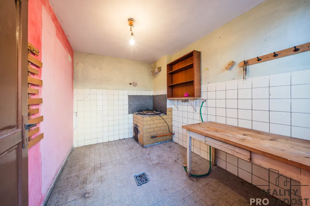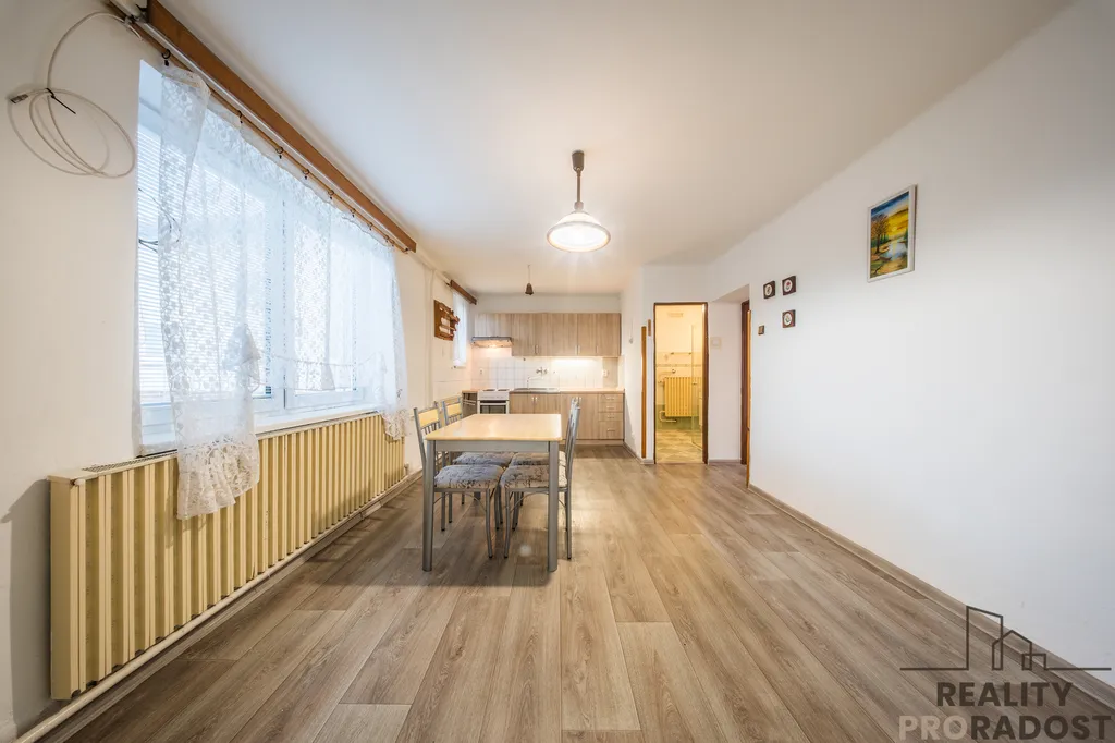 Dispozice domu zahrnuje čtyři prostorné pokoje, které poskytují komfortní bydlení pro rodinu. K nemovitosti náleží technické zázemí, letní kuchyň, dílny, které může být využito pro různé kutilské projekty, a také garáž s montážní jámou. V suterénu se nachází sklípek s krbem pro posezení, za obytnou částí a uzavřeným dvorem je oplocená zahrada. Dům je napojen na všechny IS ( elektřina, kanalizace, plyn a voda) + výhodou je studna.