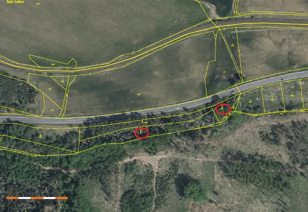 Jedná se o lesní pozemky úzkého protáhlého tvaru, nacházející se na okraji lesního komplexu ve vlastnictví obcí a fyzických osob, mezi silnicí I. třídy a vodní tokem. Na pozemcích zůstávají pouze zbytky listnáčů se zakmeněním 1.