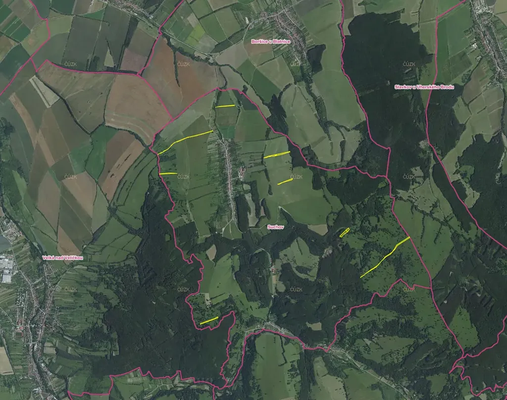 Parcelní číslo: 726, 805/38, 827/38, 870/13, 1193, 1347, 1376/16, 1376/147, 1376/179, 1376/180, 1376/181, 1391/62, 1666, 2490/100, 2490/268, 2490/269, 2491/26, 2491/98, 3058/27, 3058/29, 3058/60, 3058/123, 3195, 3470, 3471, 3808, 3811, 3812, 3815, 4813