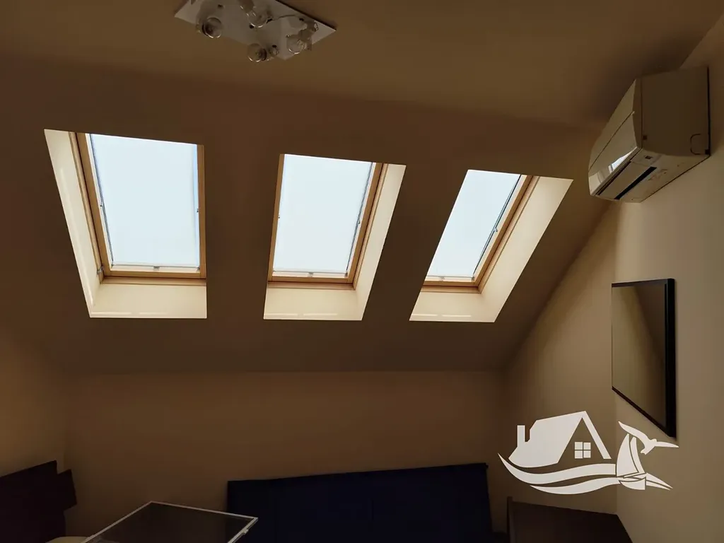 Apartmán se nachází ve čtvrtém, posledním podlaží udržované budovy s výtahem. Díky své poloze nabízí krásný panoramatický výhled na moře a dostatek světla po celý den. Prostor je řešen prakticky a útulně, ideální pro klidnou dovolenou, pohodové bydlení i investiční záměr.