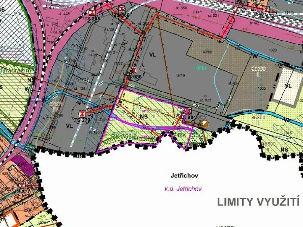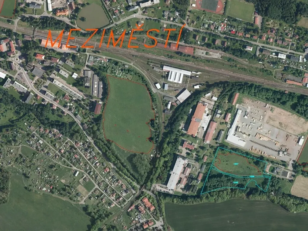 soubor tří pozemků, které se nachází v průmyslové části města. Jižní hranice jednoho pozemku