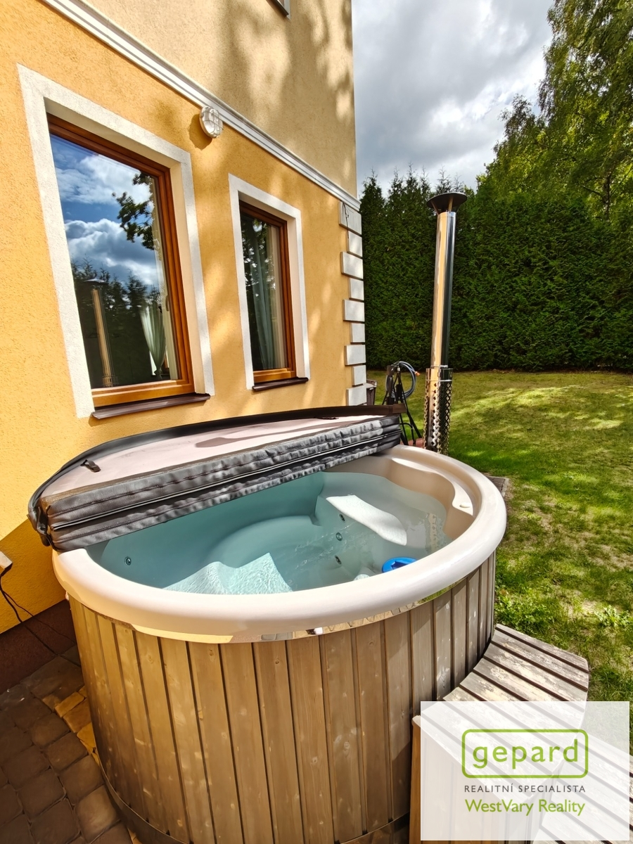 Dispozice domu: v přízemí vstup do vzdušné haly s kuchyní, obývacím prostorem v něj jsou automatické krbové kamna na pelety s dálkovým ovládáním přes aplikaci, kancelář a herna se vstupem na zahradu. Samostatný pokoj oddělený od společenské části domu, vhodný jako pracovna, ložnice pro návštěvy. Koupelna s toaletou a sprchovým koutem, technická místnost. V patře je šatna a 3 ložnice, všechny mají samostatnou koupelnu se sprchovým koutem nebo vanou a saunou. Z galerie 1. patra je výhled do obývací části domu a balkon nad kanceláří s výhledem do lesa. Dostatek parkovacího místa na vlastním pozemku.