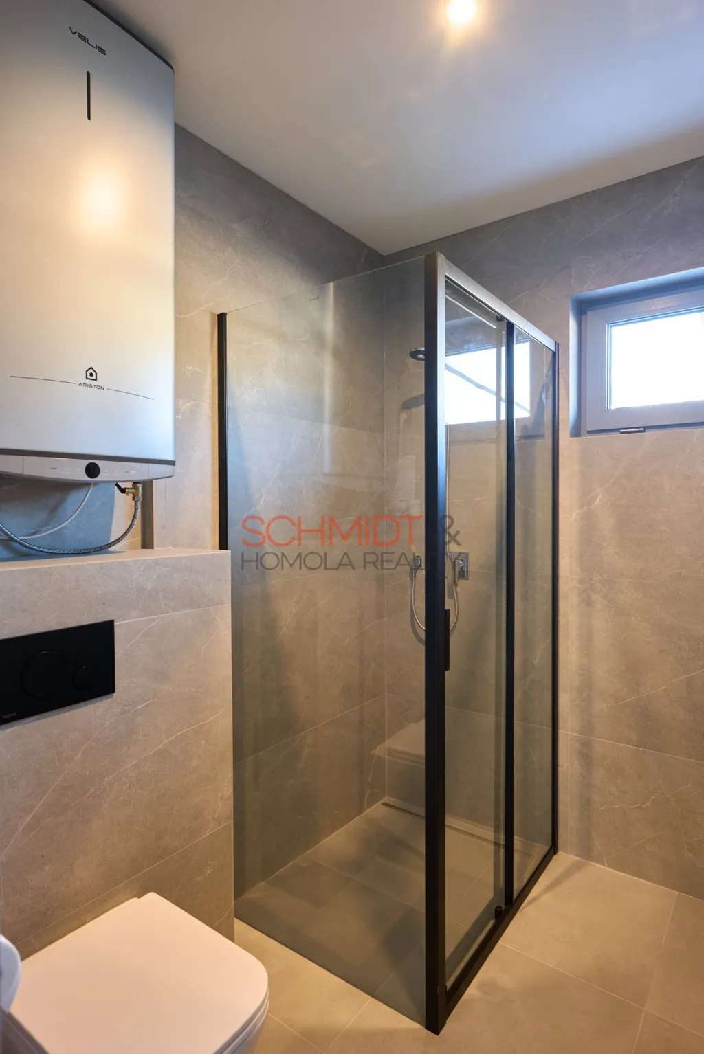 Druhé podlaží nabízí dva apartmány, každý o dispozici 2kk a výměře 26,1 m². Každá z těchto bytových jednotek je vkusně zařízena kvalitním nábytkem a připravena k okamžitému užívání. Každý z bytů má kuchyňský kout s varnou deskou, lednicí, v ložnici manželskou postelí a v obývací části roztahovací dvoulůžko vybírané s důrazem na kvalitní spaní pro další dvě osoby.