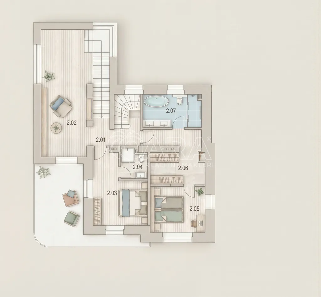 Dle studie je vila navržena jako dispozice 6+kk s garáží a ve druhé fázi také s vnitřním bazénem, na pozemku o velikosti 847 m2. Projekt počítá s komfortním rodinným bydlením, dostatkem prostoru, soukromím i logickým provozním uspořádáním domu.