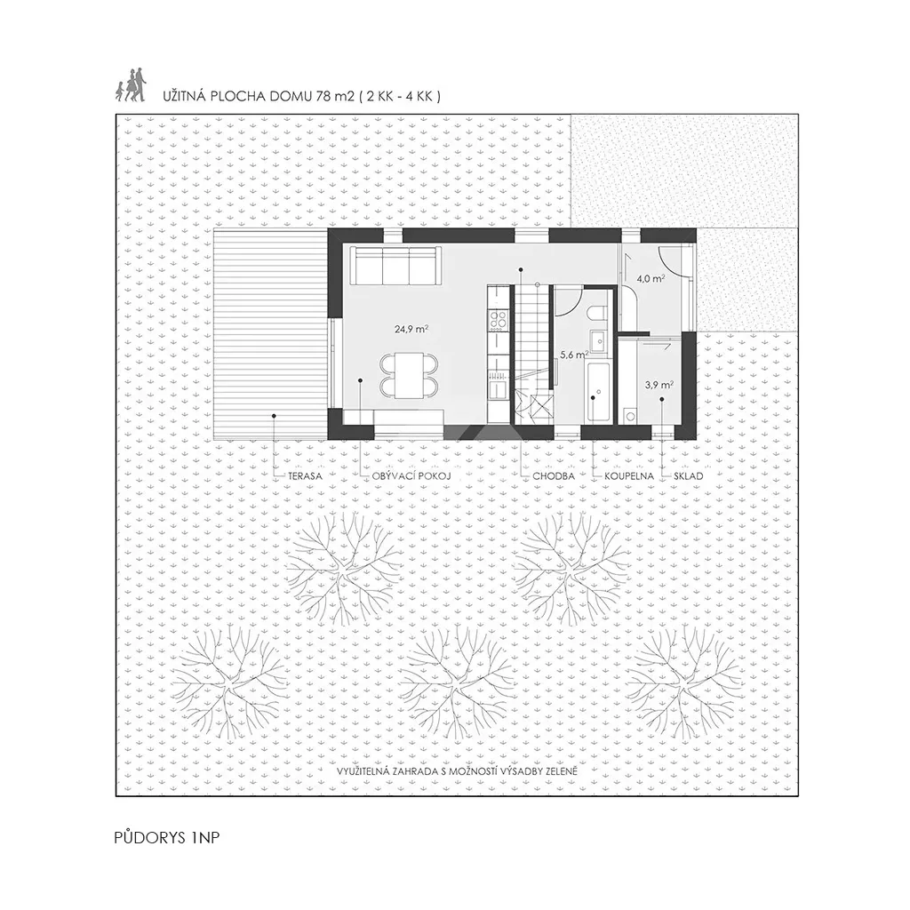 DŮM S – 2+KK (3/4+KK) | 78 m² + terasa