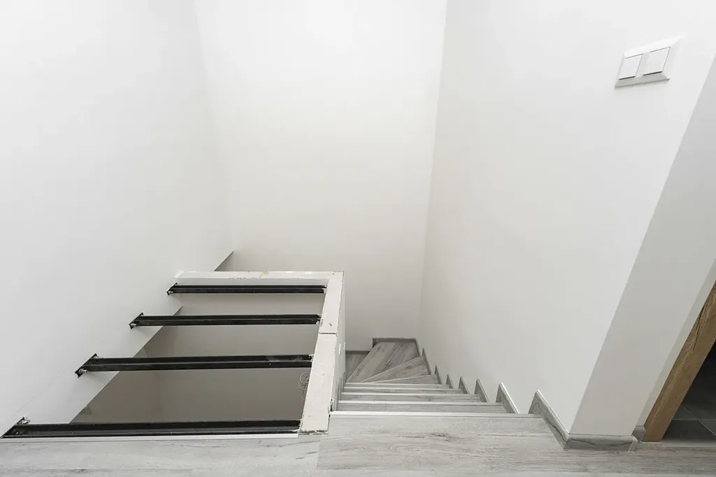 Byt je rozdělen do dvou úrovní. Po vstupu do bytu se ocitnete v útulné kuchyni, která je vybavena elektrickou indukční varnou deskou, vestavěnou elektrickou troubou a mikrovlnnou troubou. Disponuje také kuchyňským ostrůvkem, díky němu má kuchyň moderní vzhled a dostatek úložného místa. Kuchyň má také přípojky na myčku a pračku, což usnadňuje běžný provoz domácnosti. Ve spodní části bytu se nachází prostorný a slunný obývací pokoj, ideální pro odpočinek a rodinné posezení, a toaleta.