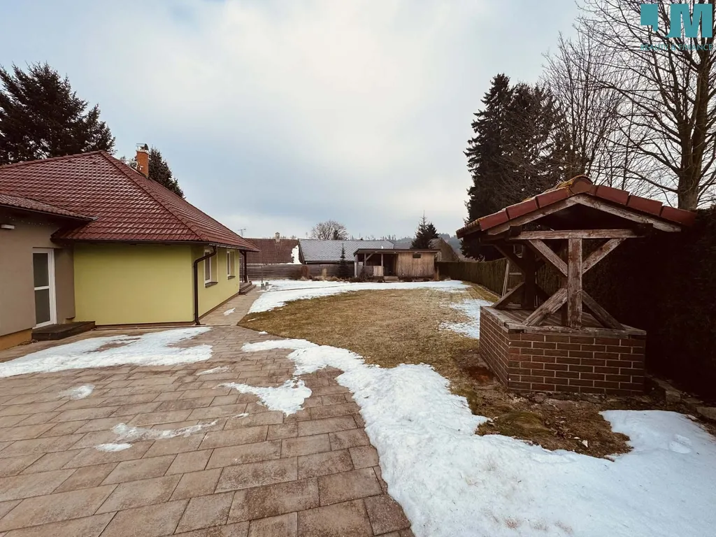 Dominantou domu je prostorný obývací pokoj propojený s moderní kuchyní a jídelní částí, s přímým vstupem na slunnou terasu. Ta plynule navazuje na rozlehlou, udržovanou zahradu o výměře 1 000 m², která poskytuje dostatek prostoru pro relaxaci, reprezentativní posezení i rodinné aktivity. Součástí pozemku je také zahradní domek.