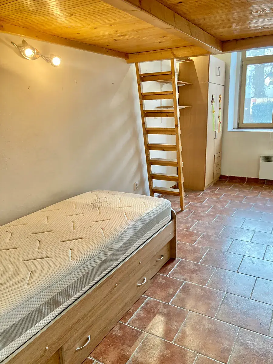 Nabízím k pronájmu byt o dispozici 1kk o celkové ploše 26m2 plus spací patro v cihlovém činžovním domě na adrese Vrchlického 47/36, Praha 5 - Košíře.