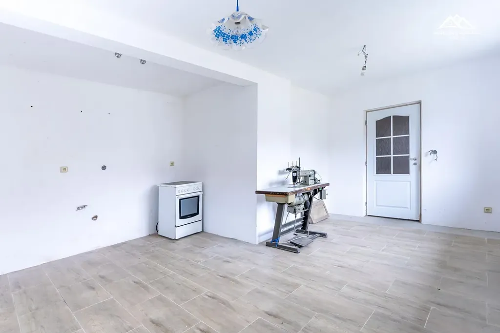 Dům je dispozičně řešen prvním nadzemním podlažím, kde je kuchyně, obývací pokoj, koupelna se sprchou, samostatná toaleta, vstup do sklepa, chodba se schodištěm do druhého podlaží. Ve druhém nadzemním podlaží je podkrovní místnost připravená na vybudování ložnice, dvou dětských pokojů, šatny, koupelny s vanou a toaletou a haly.