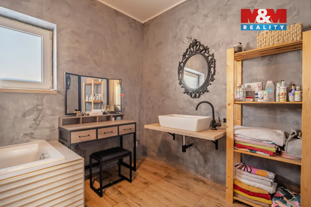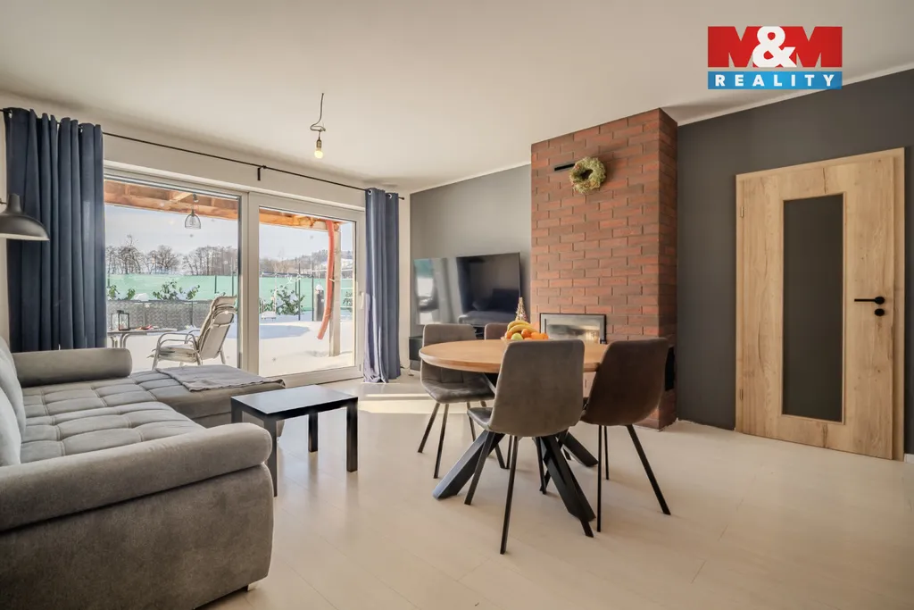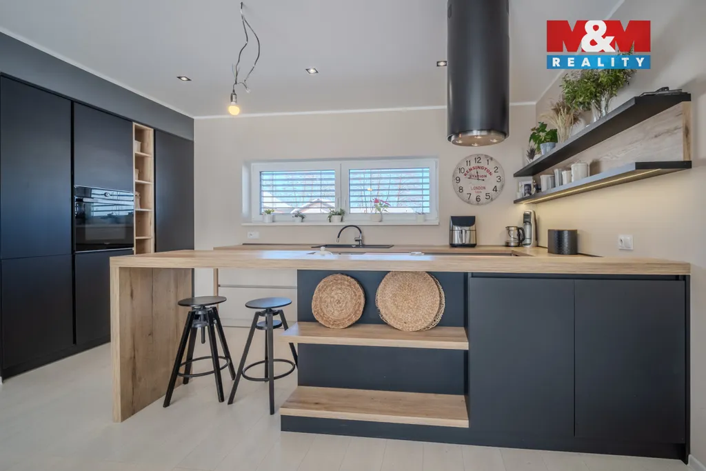 Tento jednopodlažní cihlový dům s užitnou plochou 108 m² nabízí komfortní bydlení jehož součástí je vybavená kuchyň s vestavěnými spotřebiči, obývací pokoj s krbem, 3 pokoje, 2 koupelny (sprcha, vana), šatna, technická místnost a půda.