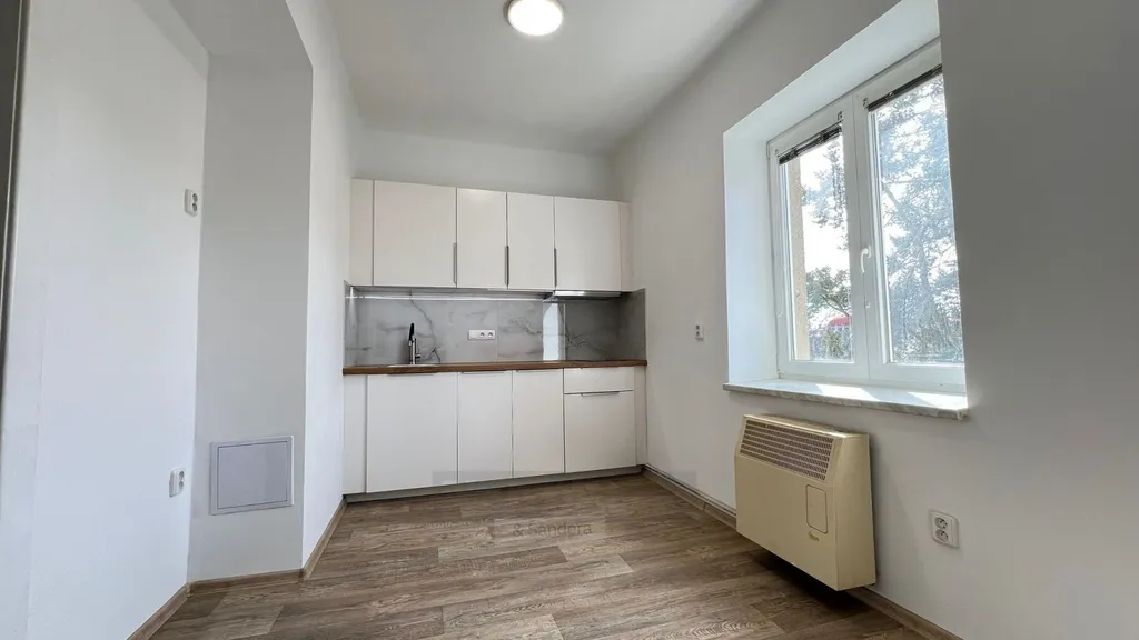Byt prošel rekonstrukcí, která zahrnovala nové rozvody vody a elektřiny, modernizaci koupelny, samostatného WC a instalaci nové kuchyňské linky. Koupelna je vybavena sprchovým koutem a umyvadlem, WC je oddělené. Kuchyně nabízí dostatek úložného i pracovního prostoru.