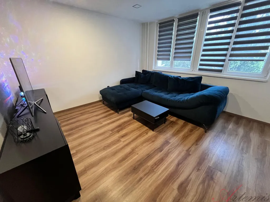 Slunný byt po kompletní rekonstrukci s vybavením viz fotografie. (bez televize) Součástí je šatna, s vestavěnou šatní skříní. K bytové jednotce náleží sklepní kóje.