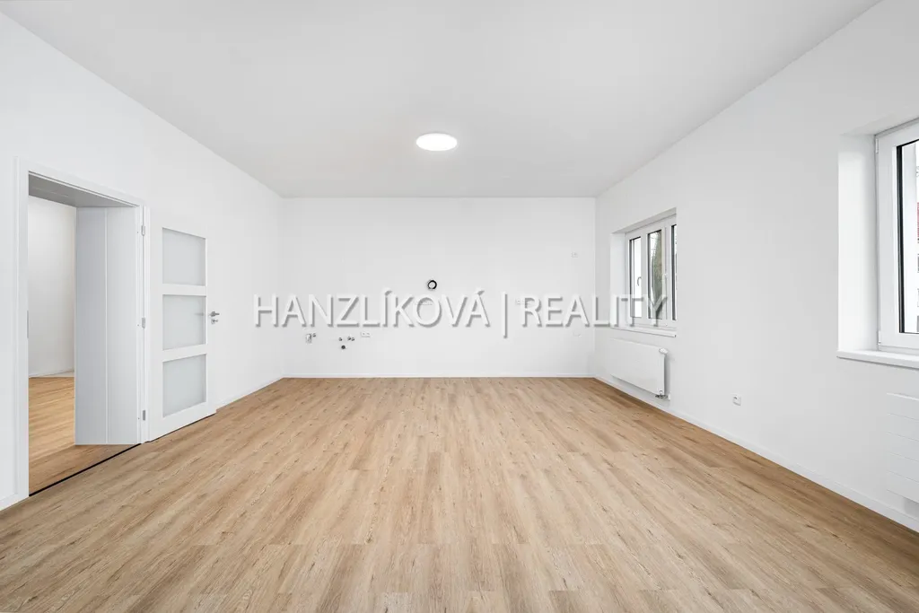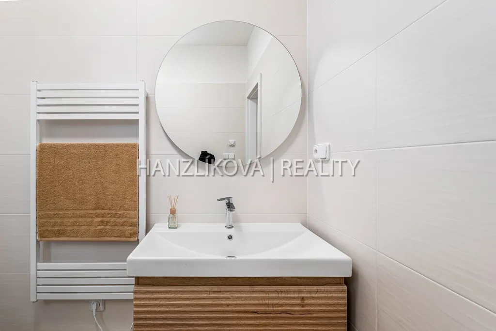 Druhá jednotka 1+kk má užitnou plochu 17 m², vlastní vstup, obytný prostor s kuchyňským koutem a samostatnou koupelnu se sprchovým koutem a toaletou. Ideální jako investiční byt k pronájmu, kancelář, ateliér nebo ubytování pro hosty.