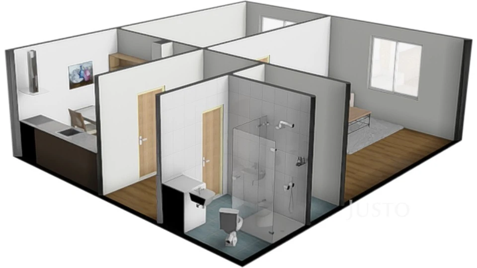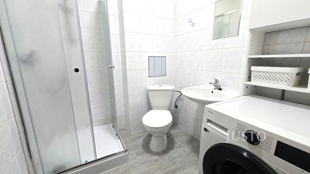 - koupelna se sprchovým koutem a toaletou, kde je také pračka