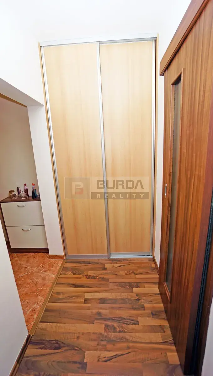 V chodbě je vestavěná skříň. Šatní skříň v ložnici může zůstat, dle dohody. Ostatní nábytek v bytě nezůstane.
