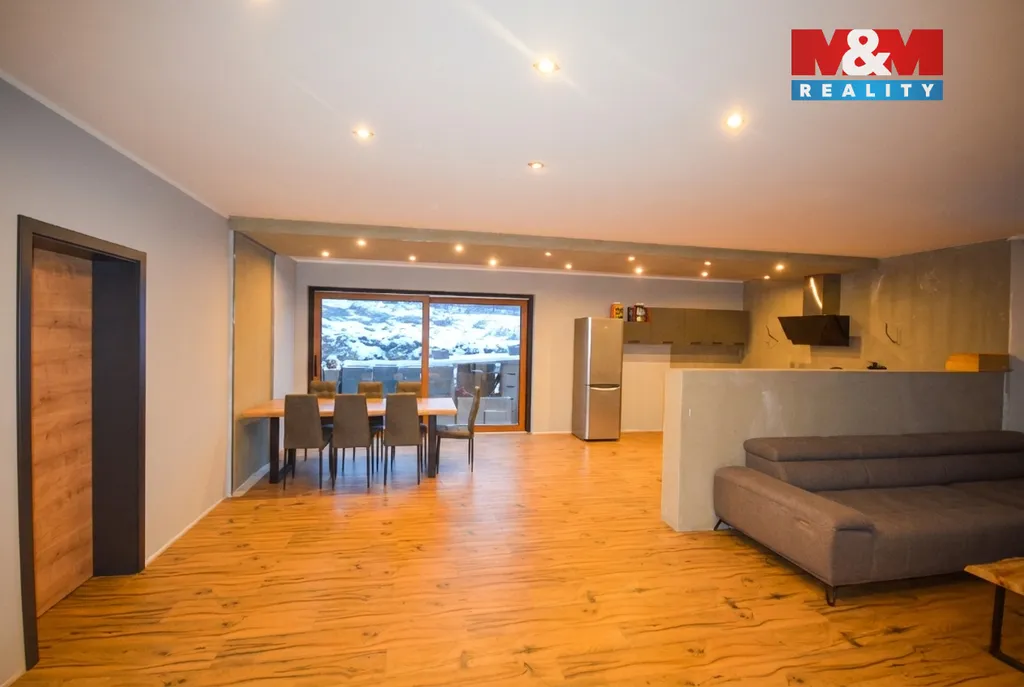 Nabízíme k prodeji moderní novostavbu rodinného domu 6+kk v klidné části obce Sosnová. Tento jednopodlažní cihlový dům o užitné ploše 182 m² je situován na prostorném samostatném pozemku o rozloze 1168 m². V domě naleznete obývací pokoj s kuchyňským koutem a krbovými kamny, pracovnu, dva dětské pokoje, ložnici se vstupem do nedokončené koupelny a další pracovnu. K dispozici je také samostatné WC a koupelna se sprchovým koutem a sedací vanou. Dům je vybaven kvalitním tepelným čerpadlem a trojskly pro maximální úsporu energií. Dvě technické místnosti poskytují další úložné možnosti. Nemovitost je před kolaudací, což umožňuje dokončení podle vlastních představ. Ideální volba pro rodiny hledající klid a pohodlí v moderním domě.