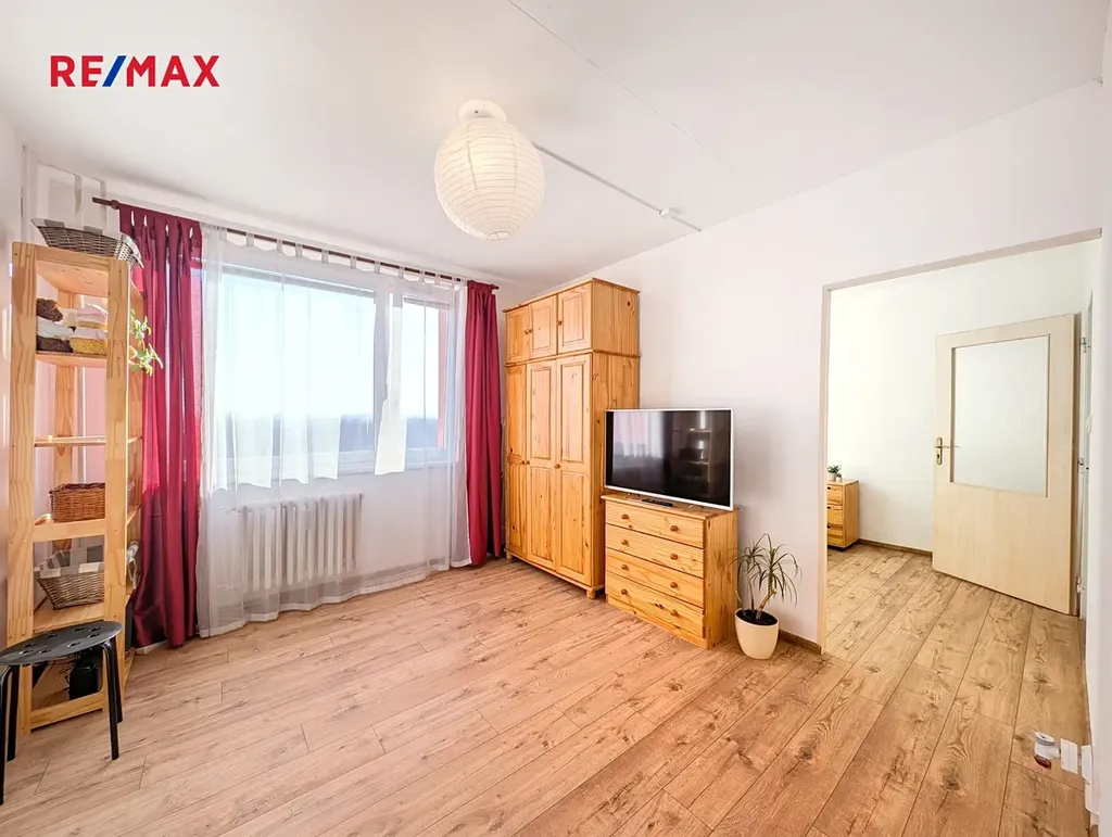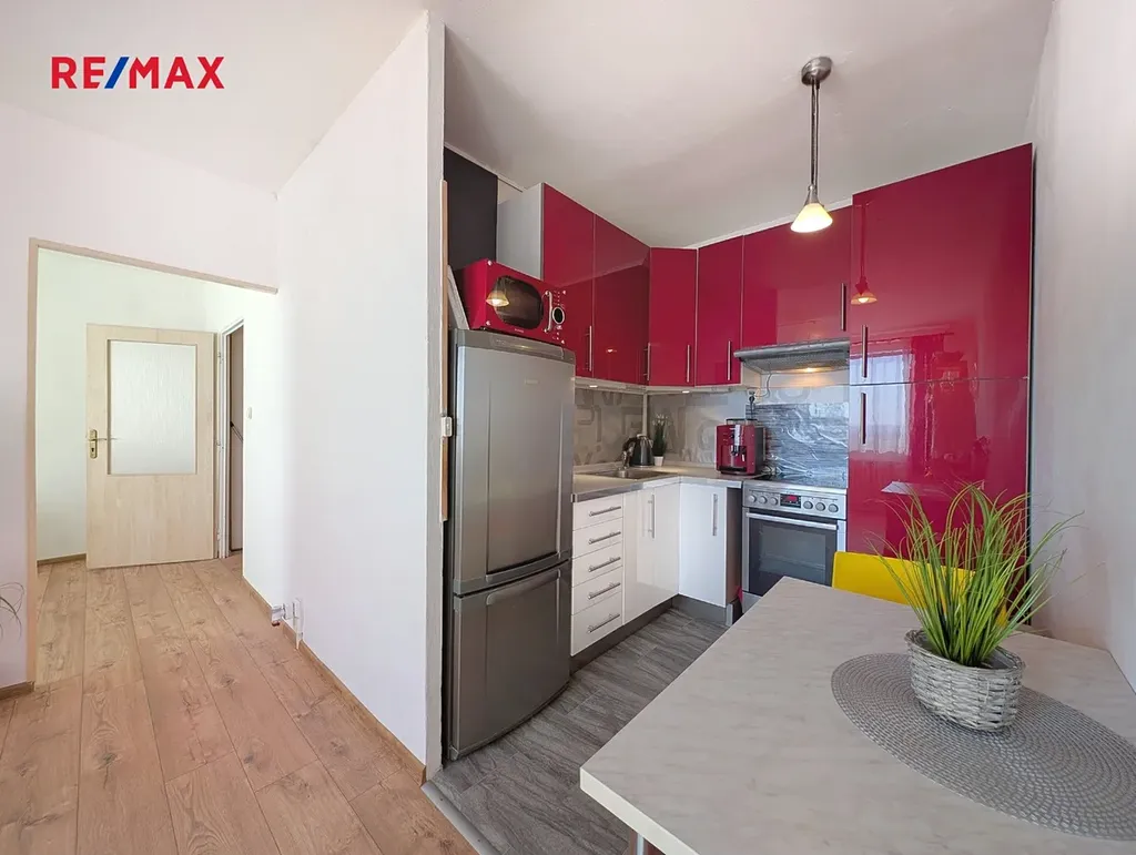 Byt je ve velmi pěkném stavu, má novou podlahu, je zařízený a připraven k okamžitému nastěhování.