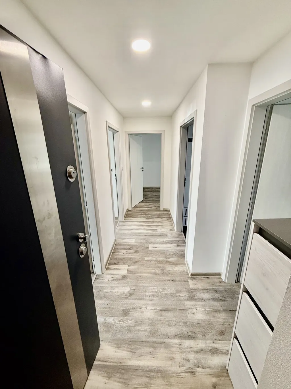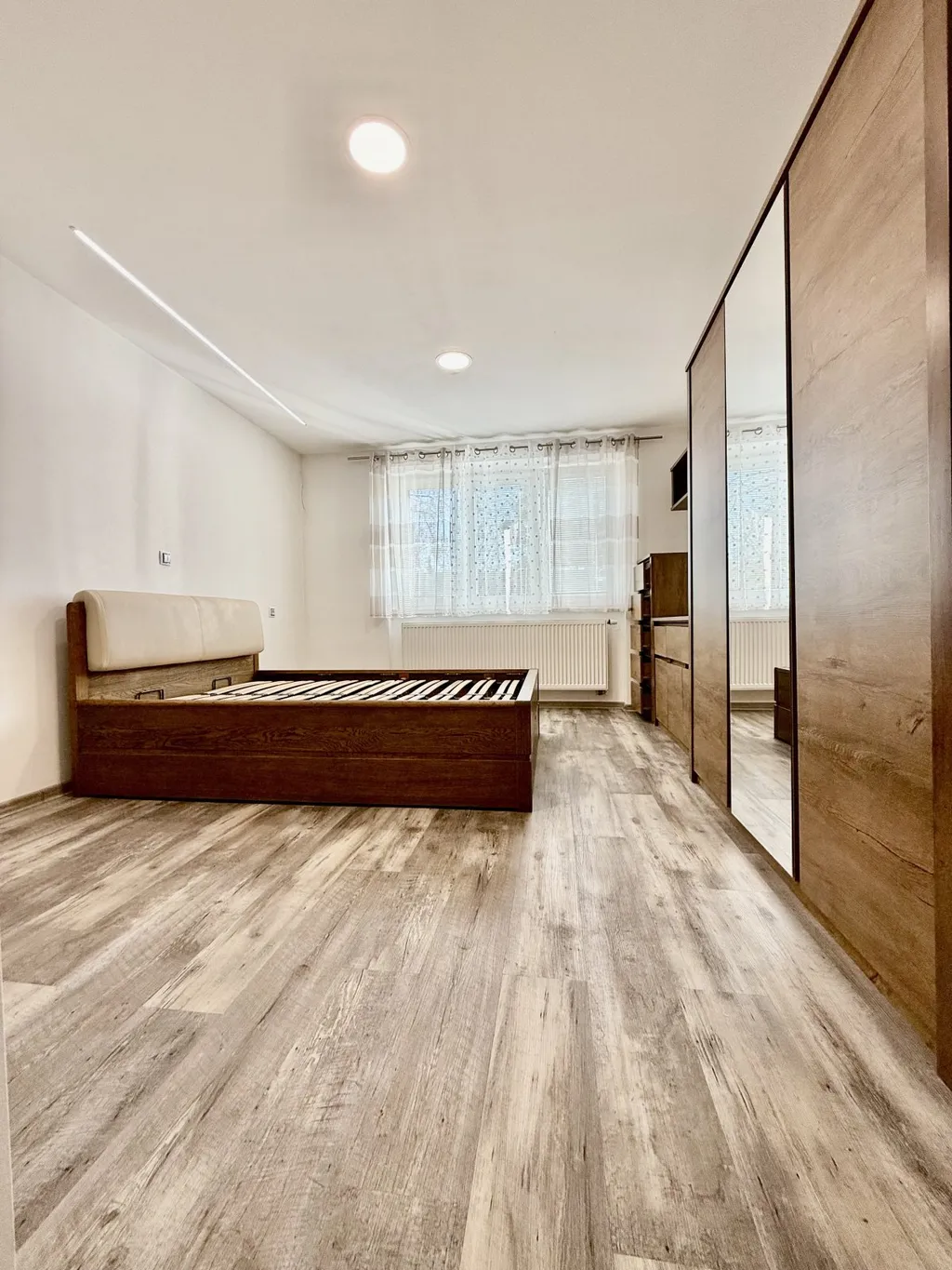 _Při vstupu do bytu vás uvítá prostorná chodba, odkud se dostanete do všech oddělených místností. V moderní kuchyni bude radost vařit, jelikož je kuchyňský kout vybaven všemi nezbytnými spotřebiči včetně myčky a spoustou úložných prostor. V ložnici je k dispozici postel a vestavěná skříň. K dispozici je také v předsíni botník a šatník. V elegantní koupelně si po náročném dni můžete dopřát relax ve vaně. Součástí bytu je také technická místnost pro pračku, sušičku s možností dalšího úložného prostoru. V oknech jsou nainstalovány žaluzie. K bytu náleží prostorný sklep 4 m2.