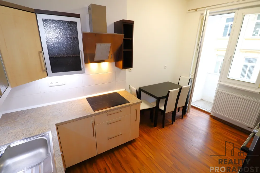 - Kuchyně: Samostatná kuchyně s druhým balkonem (2 m²), který směřuje do ulice Antonínská. Kuchyně je vybavena linkou se spotřebiči.