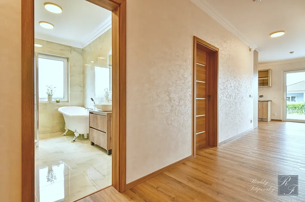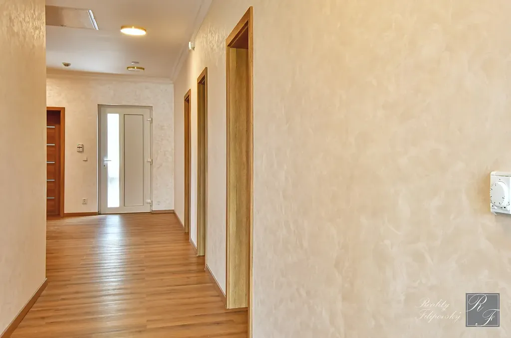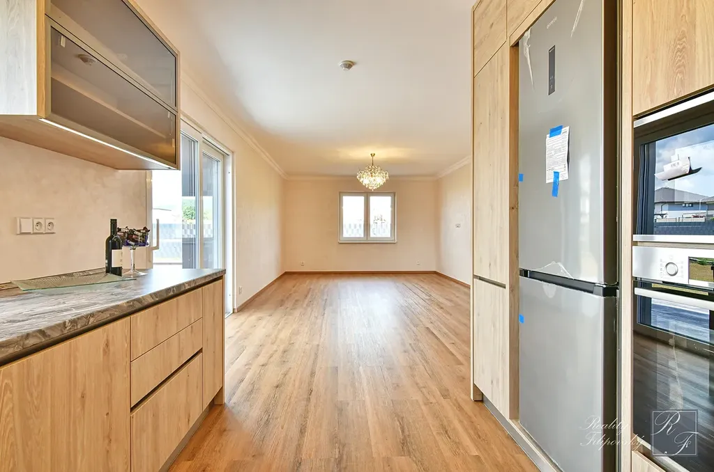 Dovoluji si Vám nabídnout zděnou novostavbu rodinného domu o podlahové ploše 178 m2 s dispozicí 5+kk a navazující dvougaráží. Jedná se o právě zkolaudovaný dům, který byl kompletně dokončen, a to včetně venkovních zpevněných ploch, oplocení, vjezdové brány i branky, venkovní terasy a upravené zahrady. Na Vás pak bude pouze osázení libovolných míst okrasnou vegetací, která je nejblíže Vašemu srdci a vkusu.