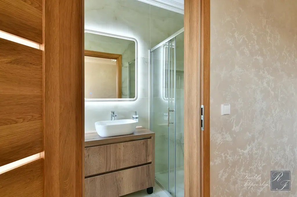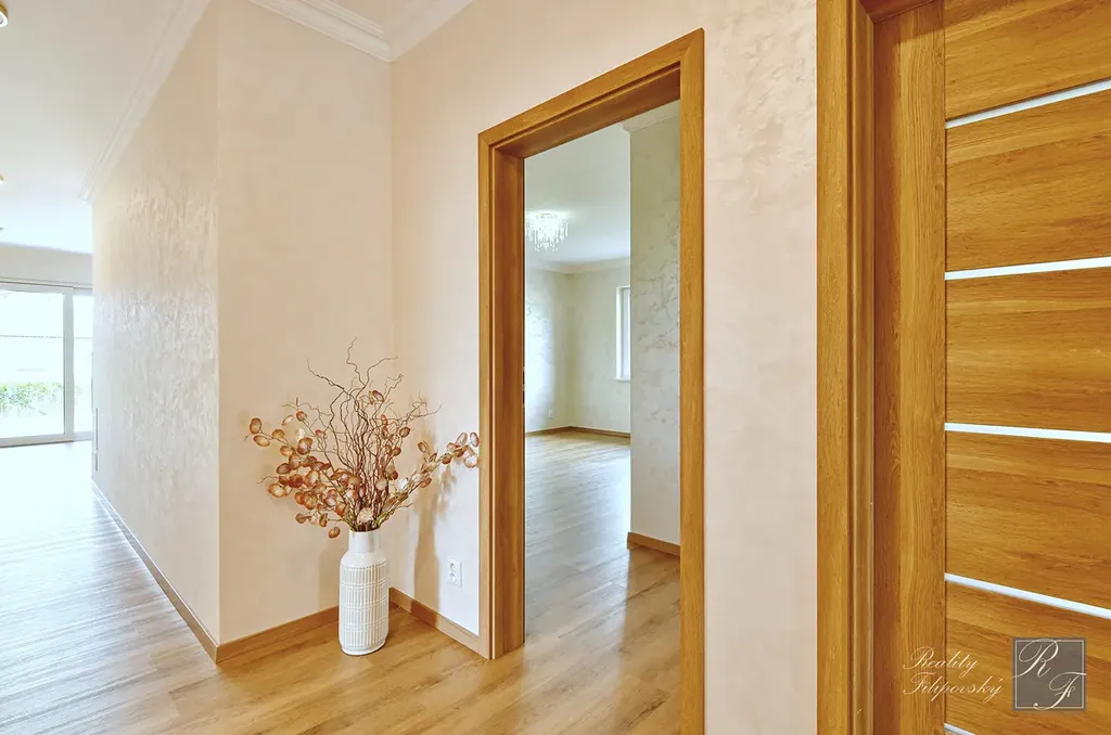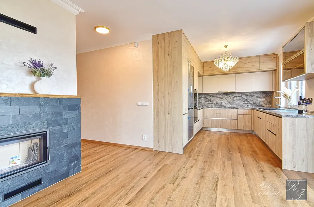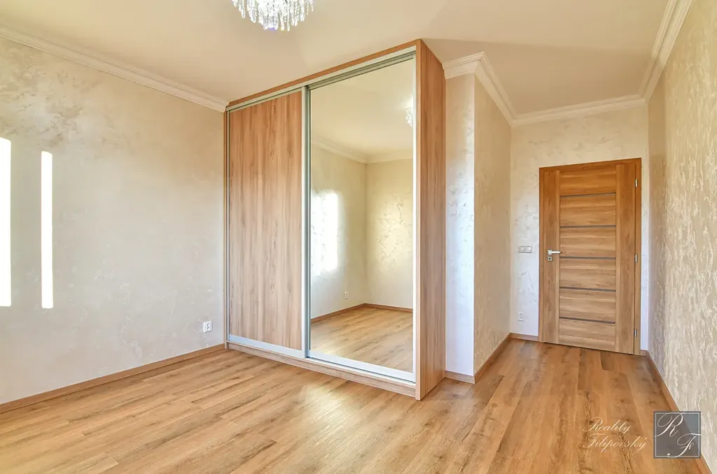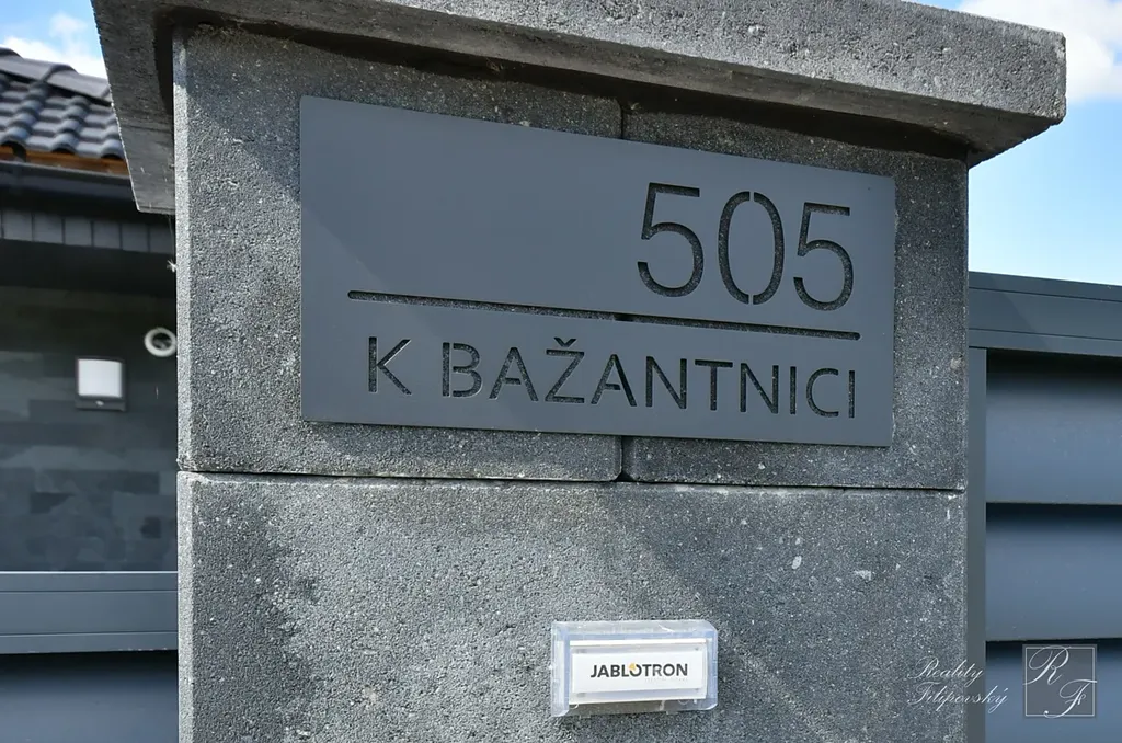 Robustní vestavné skříně jsou zhotoveny ze zdvojeného materiálu s kompletním vnitřním vybavením a automatickými dojezdy v každé z ložnic. Kuchyňská linka na míru se spotřebiči Bosch včetně spíže, která obsahuje kompletní vnitřní vybavení. Osvětlení je ve všech místnostech a je řešeno vestavným či stropním osvětlením, centrálními křišťálovými lustry a zrcadly s integrovanými led světly. V koupelnách jsou pákové a termostatické baterie zn. Grohe a Hansgrohe. Dvougaráž je osazena automatickými zateplenými sekčními garážovými vraty Trido s dálkovým i přímým ovládáním. Automatická brána na dálkové ovládání, vstupní branka s integrovanou poštovní schránkou i čelní plotové výplně jsou zn. Luxline. Obložení domu i krbu je z přírodního kamene.