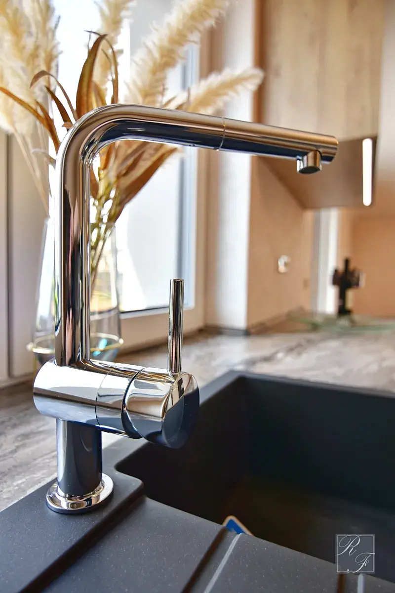 Okapový systém je sveden do zabudované retenční nádrže o kapacitě 5 m3 a je spojený se systémem čerpání Gardena. V domě jsou osazeny 2 vodoměry (oba umístěné přímo v garáži). Jeden vodoměr měří spotřebu vodného i stočného a druhý vodoměr pro zahradní ventily a garáž je určen pro měření pouze vodného = úhrada cca ½ standardní ceny vody z příslušných odběrných míst.