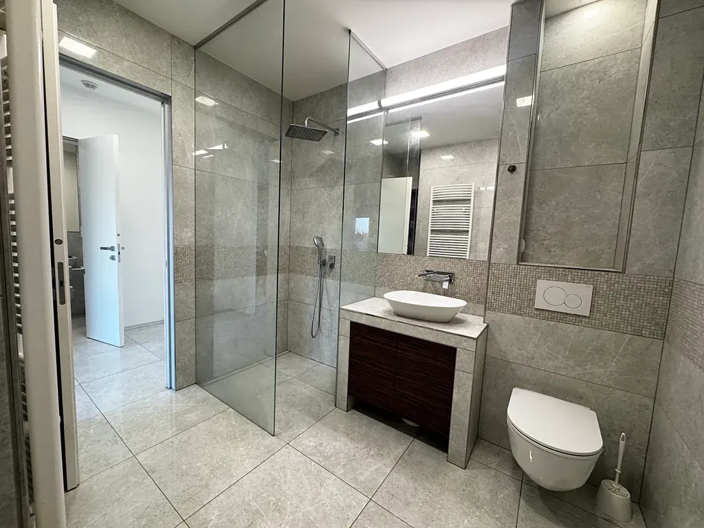 Exklukzivně nabízíme k pronájmu nadstandardní byt o dispozici 3+kk a podlahové ploše 83 m², který se nachází v oblíbené lokalitě v centru Pardubic, v ulici Štrossova. Byt je situován v posledním podlaží bytového domu a zaujme především svou prostornou terasou s krásným výhledem na okolní zástavbu. Interiér je světlý, moderní a prakticky řešený – obývací pokoj je propojen s kuchyňskou částí, která se dá uzavřít posuvnými skleněnými dveřmi. Po vstupu se otevře krásný výhled v podobě proskleného HS portálu a vstupu na terasu s výhledem. Součástí bytu je také prostorná šatna, dvě samostatné ložnice, koupelna se sprchovým koutem, samostatné WC a technické zázemí. V bytě je klimatizace v hlavní místnosti, vestavěné skříně i dostatek úložných prostor. Aktuálně je po malování a probíhá vyklízení a úklid po nájemci. Novému nájemci se bude předávat ve vyklizeném, nově vymalovaném a uklizeném stavu, bez vybavení. Pračka se sušičkou v koupelně je k dispozici k odkupu za 10.000,-. Byt je k dispozici od 1. února 2026. Parkování je možné na ulici. Nájemné činí 22 000 Kč měsíčně. Elektřinu si nájemce přepisuje na sebe (aktuálně ČEZ), záloha na vodu činí 300,-/os./měs. Úklid společných prostor je 320,-/měs. Kola atd. je možné ukládat v přístřešku u vchodu na zahradu. Zahrada náležející k domu je k využití v případě zajištění údržby nájemcem (sekání trávy, střih keřů, atd.). Kauce je stanove na dva nájmy. Odměna RK za zprostředkování ve výši jednoho nájmu. Lokalita nabízí kompletní občanskou vybavenost v docházkové vzdálenosti a výbornou dostupnost MHD. Tento byt je vhodný pro ty, kdo hledají komfortní a stylové bydlení v klidné části města s výbornou adresou. Doporučujeme prohlídku.