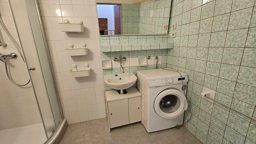 Na patře je k dispozici jídelna s kuchyňským koutem, koupelna se sprchovým koutem a pračkou, WC a další dva pronajímané pokoje (s balkonem). K užívání celkem max. pro 3 osoby.