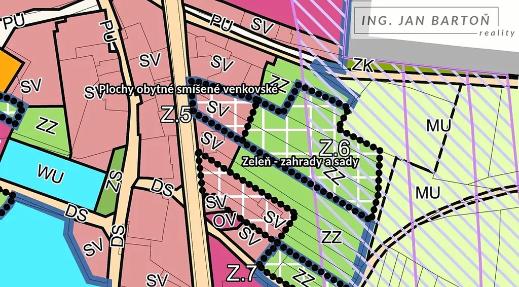 Přibližně 1/3 pozemku je územním plánem obce určena ke stavbě bydlení.