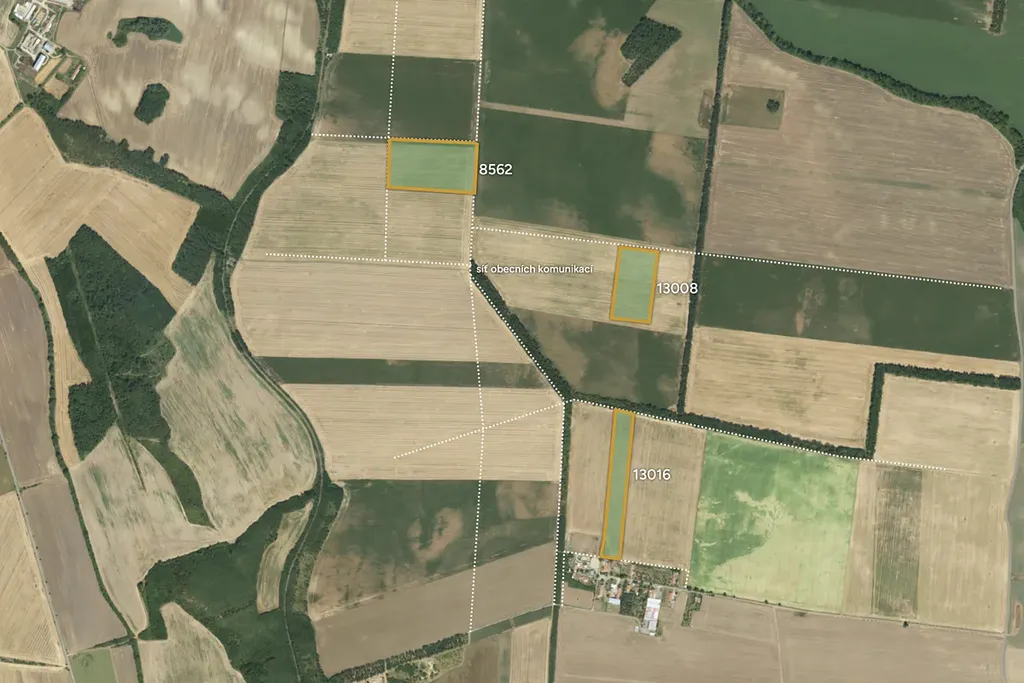 dvě parcely v KÚ Hrušovany nad Jevišovkou, zapsané na LV 3139 pod čísly parcel 13008 a 13016