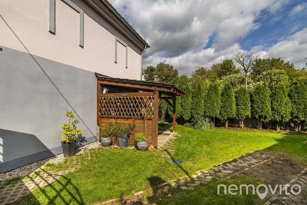 Na dům navazuje dřevěná pergola, ideální pro letní posezení. V zadní části zahrady se nachází zahradní domek využitelný jako sklad zahradního náčiní nebo sezónního vybavení.