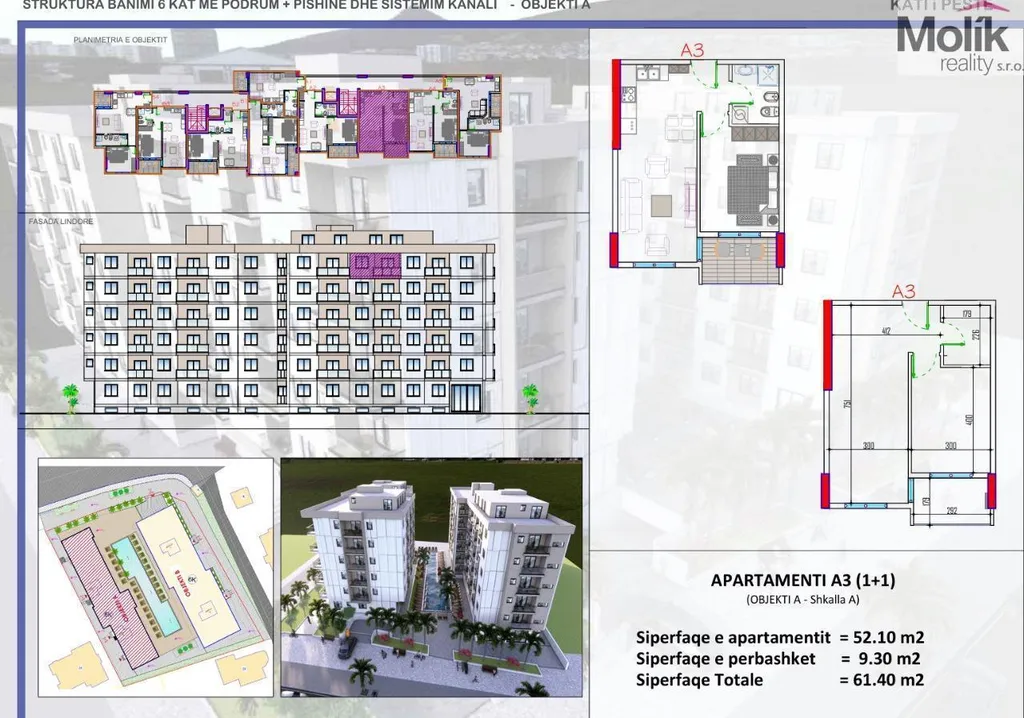 Nabízíme k prodeji apartmán v rezidenčním developerské projektu s bazénem o celkové ploše 61.40 m2, který je situován v 5.patře budovy s výtahem.
