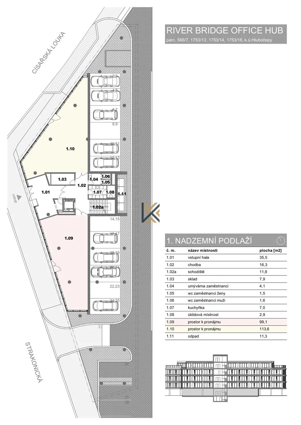 Nabízíme k pronájmu obchodní prostory 99 m2 v nově vznikající budově River Bridge Office Hub v ul. Strakonická, Praha 5. Prostory budou k předání ve stavu shell and core. Majitelé si přejí, aby byl tento prostor využit ve spojení se sportovním odvětvím – ať už formou prodejny se sportovními potřebami (výživa, oblečení, pomůcky apod.), nebo například jako cvičební studio, menší fitness či podobný koncept.
