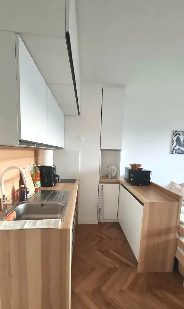 Byt prošel před cca 10 lety celkovou rekonstrukcí: nové rozvody inženýrských sítí, podlahové krytiny, renovace interiérových dveří, koupelna, ... . Před dvěma lety byla do bytu pořízená nová kuchyňská linka. Některé vnitřní vybavení bytu, jako je kuchyňská linka, včetně spotřebičů, a část nábytku v obytném pokoji i koupelně, je zahrnuté v kupní ceně,