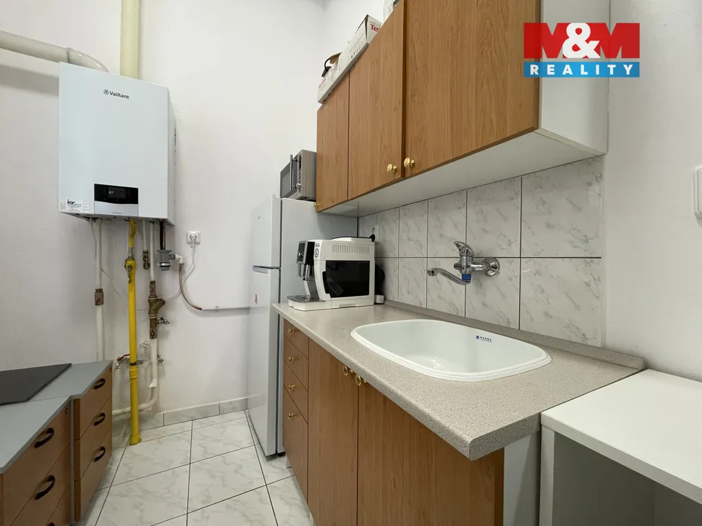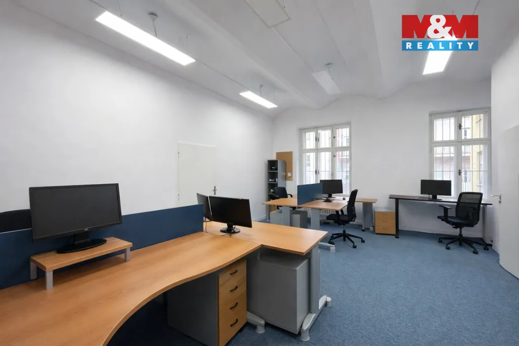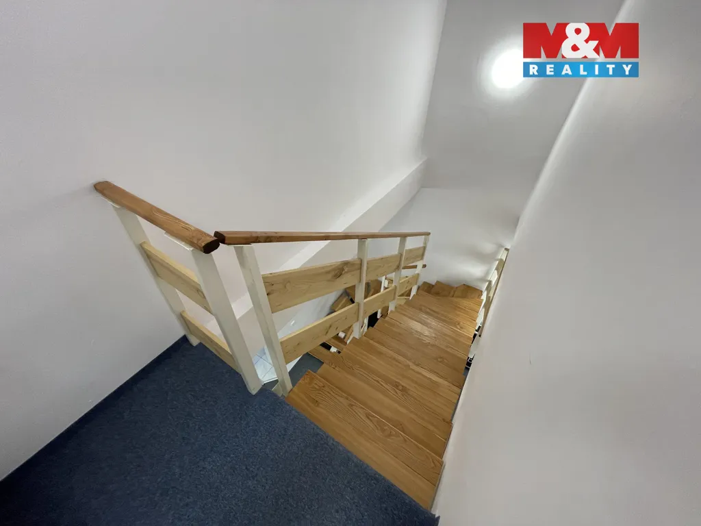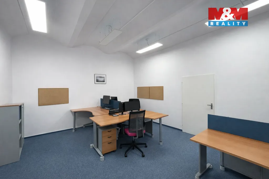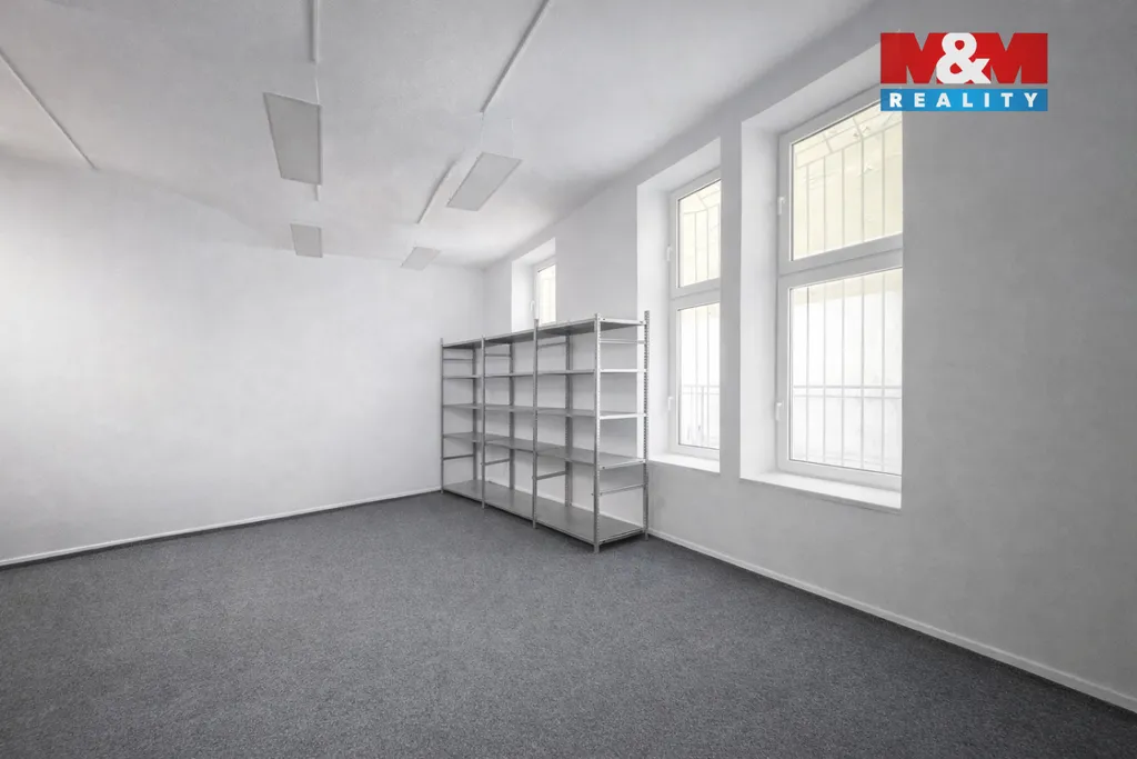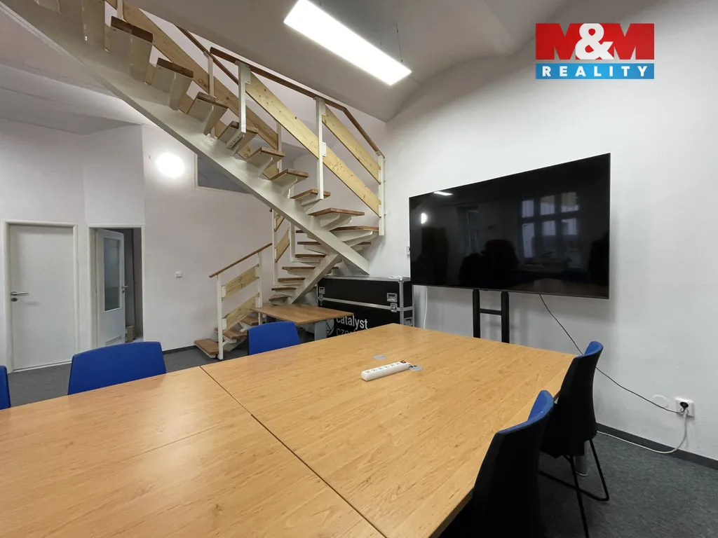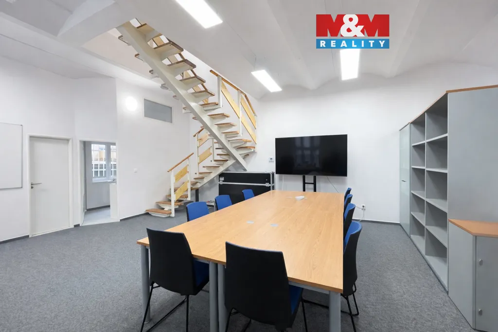 V přízemí se nachází hlavní otevřený prostor, vhodný jako kancelář, showroom či prodejna, dále sklad a technické zázemí v podobě kancelářské kuchyňky s linkou a lednicí. K tomu 2x samostatné WC pro pány/dámy nebo klienty/personál. V horním podlaží jsou umístěny dvě samostatné kanceláře, ideální pro klidnou administrativní práci nebo vedení společnosti. Součástí nabídky je také samostatný sklad o výměře 12 m², přístupný přímo ze dvora.
