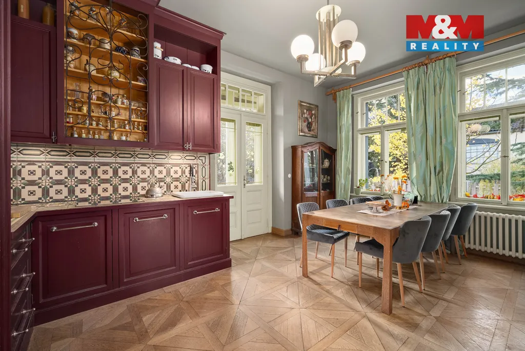 Hledáte kouzlo historie, které zůstalo zachováno v původním duchu? Nabízíme vilu z roku 1914, která byla v roce 2007 zrekonstruována s důrazem na zachování původního stylu. Dům je kompletně podsklepen, vytápění zajišťuje tepelné čerpadlo země voda, navíc jsou v domě 3 designová kamna za účelem lokálního vytápění a příjemné atmosféry. Interiéry jsou vybaveny dřevěnými podlahami (kazetové palubky), vestavěný dřevěný nábytek, kuchyňská linka, interiérové dveře. V současné době je dům využíván dvougeneračně s možností rozšíření obytných prostor na půdě. Vlastní, rovinatý pozemek o celkové výměře 1405 m2, na němž najdete letní kuchyni s pergolou, zahradní koupací jezírko, skleník, zděný zahradí domek, zimní zahradu. Vila je umístěna v městysi Karlštejn, cca 13 km východně od Berouna a 30 km jihozápadně od centra Prahy. Leží uprostřed chráněné krajinné oblasti Český kras. Dominantou obce je hrad Karlštejn a jedinečná příroda obklopující tuto lokalitu, vč. řeky Berounky.
