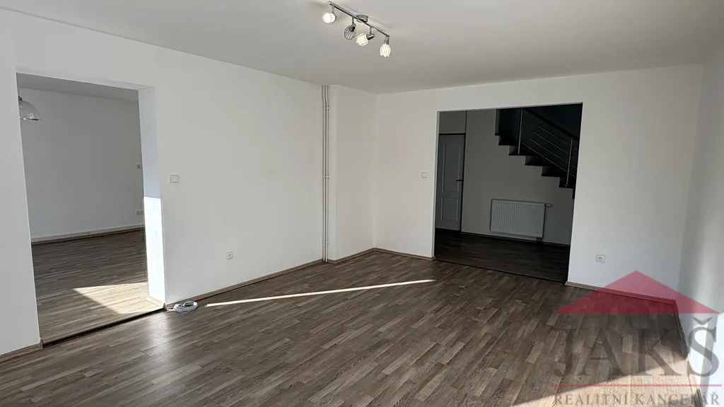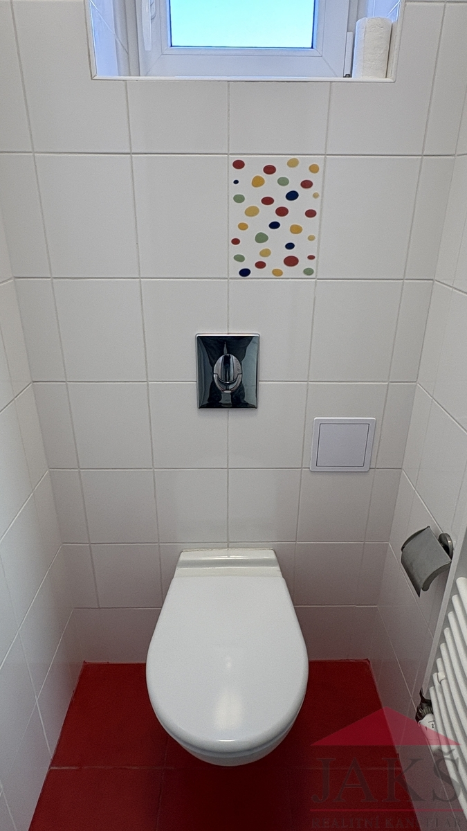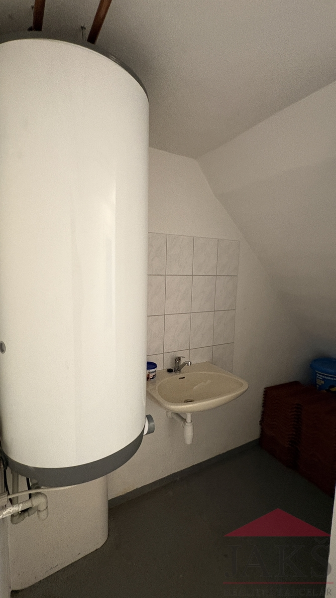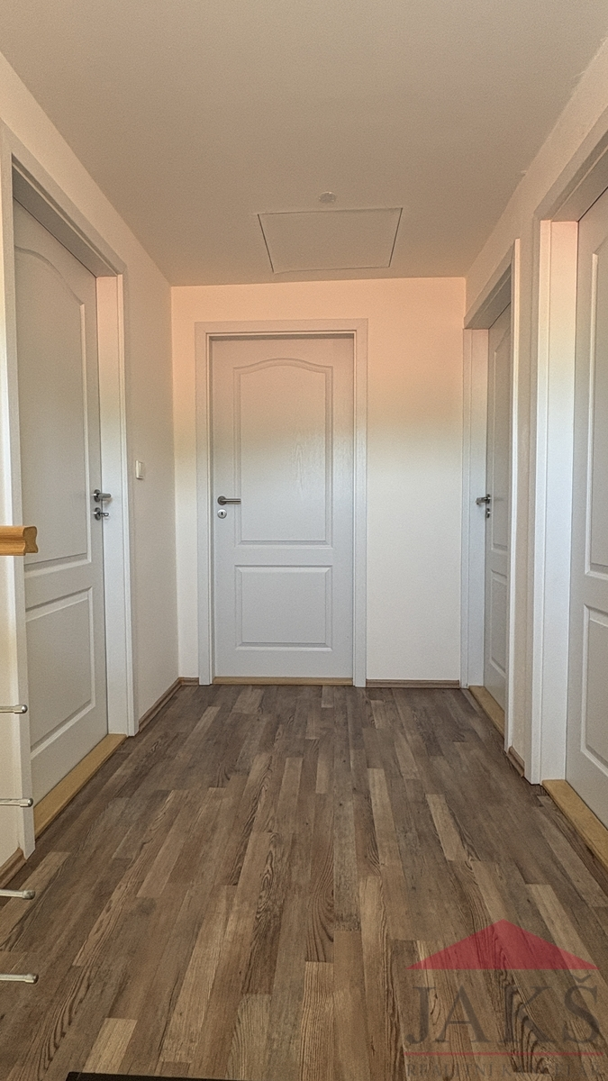 Popis: suterén (73,2 m2): dlouhá garáž (lze parkovat i dvě auta), technická místnost (el. boiler, elektrokotel, umyv.), 3x sklep/sklad, chodba se schodištěm do přízemí (72,8 m2): veranda, hala se schodištěm, samostatné WC (topný žebřík), koupelna (sprchový kout, umyv. se zrcadlem, vývody na pračku, topný žebřík), kuchyně s jídelnou (kuch linka vč. vestavěných spotřebičů: HV trouba, sklo-ker. deska, digestoř a myčka) a prostorný obývací pokoj (možnost krbu); podkroví (73,2 m2): podesta, velká koupelna (rohová vana, umyv. se zrcadlem, WC, topný žebřík), 3x ložnice a balkon s výhledem; půdička.