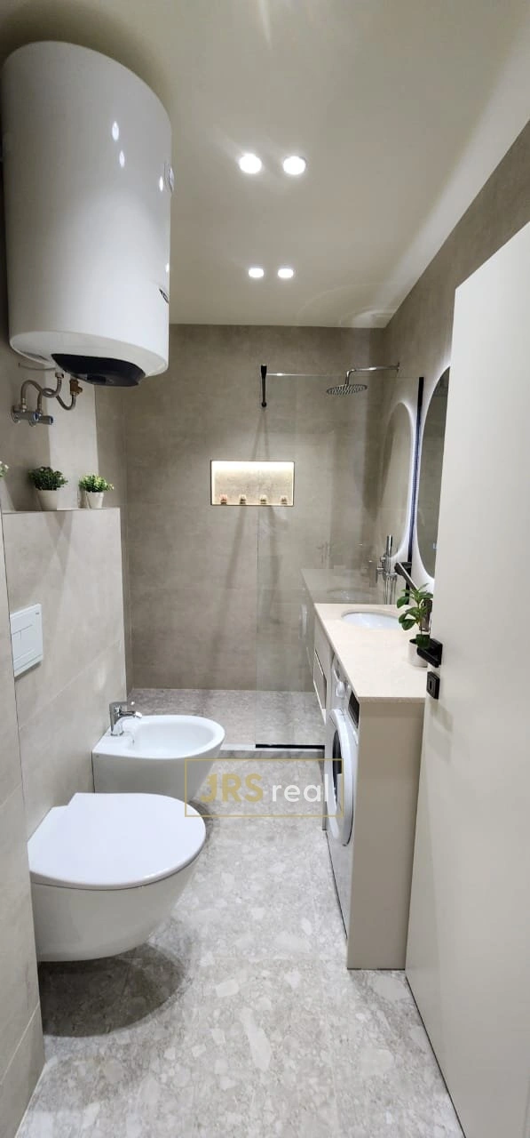 Ve výhradním zastoupení majitele nabízíme k prodeji plně zařízený byt 3+kk o velikosti 71 m² v oblíbeném přímořském městě Durrës v Albánii. Byt se nachází ve 2. patře bytového domu s výtahem. Po vstupu do bytu Vás přivítá prostorná chodba s botníkem a věšáky. Po pravé straně se nachází koupelna vybavená pračkou, umyvadlem, zrcadlem, sprchovým koutem, bidetem a toaletou. Na konci chodby je hlavní obytná část tvořená obývacím pokojem spojeným s kuchyní. V obývacím pokoji je k dispozici velká pohodlná pohovka, konferenční stolek, obývací stěna a televize. V jídelní části se nachází jídelní stůl se židlemi. Kuchyně je vybavená kuchyňskou linkou s vestavěnou troubou, sklokeramickou varnou deskou a lednicí. Z obývací části je vstup do pokoje, který je vybavený dvěma jednolůžkovými postelemi a šatní skříní – ideální jako dětský pokoj nebo pokoj pro hosty. Naproti pokoje je ložnice s dvoulůžkovou postelí, toaletním stolkem, zrcadlem a televizí. Z ložnice je vstup na terasu s výhledem do města, která nabízí příjemné posezení. Byt je v perfektním stavu, klimatizovaný a moderně zařízený. Díky své poloze představuje ideální příležitost jak pro vlastní rekreaci, tak pro investici. V případě zájmu kontaktujte makléře.