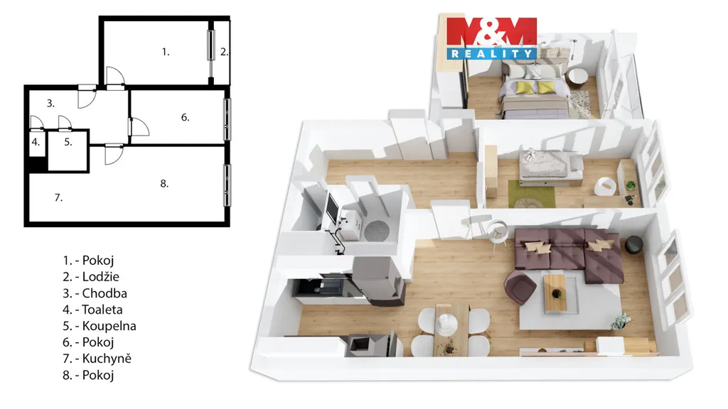 Nabízíme k prodeji světlý a prostorný byt 3+kk s lodžií v osobním vlastnictví o užitné ploše 60 m², který se nachází v 1. nadzemním podlaží udržovaného panelového domu v klidné části Prahy - Černý Most. Byt disponuje praktickou dispozicí, která zahrnuje předsíň, vzdušný obývací pokoj s kuchyňským koutem, ložnici, dětský pokoj, koupelnu a samostatnou toaletu. K bytu náleží také sklepní kóje, poskytující dostatek úložného prostoru. Nemovitost prošla rekonstrukcí, takže je připravená k okamžitému nastěhování bez nutnosti dalších investic. Díky své dispozici je ideální volbou jak pro mladé rodiny, tak i jako výhodná investiční příležitost. Velkou výhodou je výborná lokalita s kompletní občanskou vybaveností. V blízkosti se nachází nákupní centrum Westfield Černý Most, autobusová zastávka Doležalova a stanice metra C Černý Most je v docházkové vzdálenosti, což zajišťuje rychlé spojení do centra města. Neváhejte a domluvte si prohlídku.