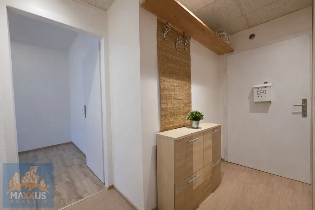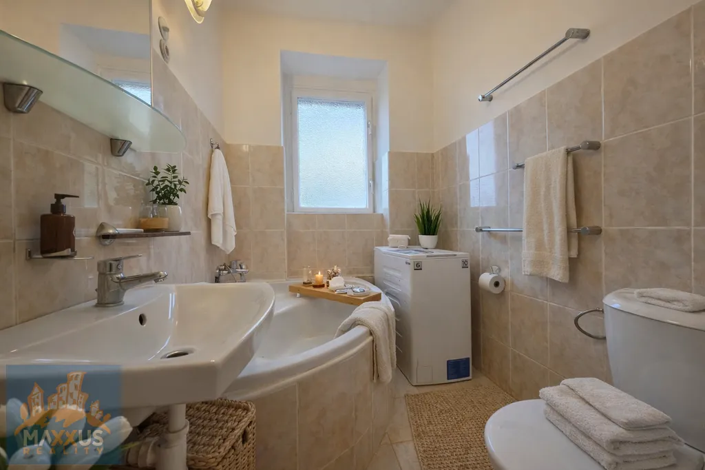 Dispozice bytu: vstupní předsíň, prostorná samostatná kuchyně (vestavěná skříň), dále obytný pokoj / ložnice. Ve středu bytu se nachází koupelna s rohovou vanou, toaletou a novou pračkou s horním plněním (6 kg). Velkou výhodou je okno v koupelně, které zajišťuje přirozené větrání.