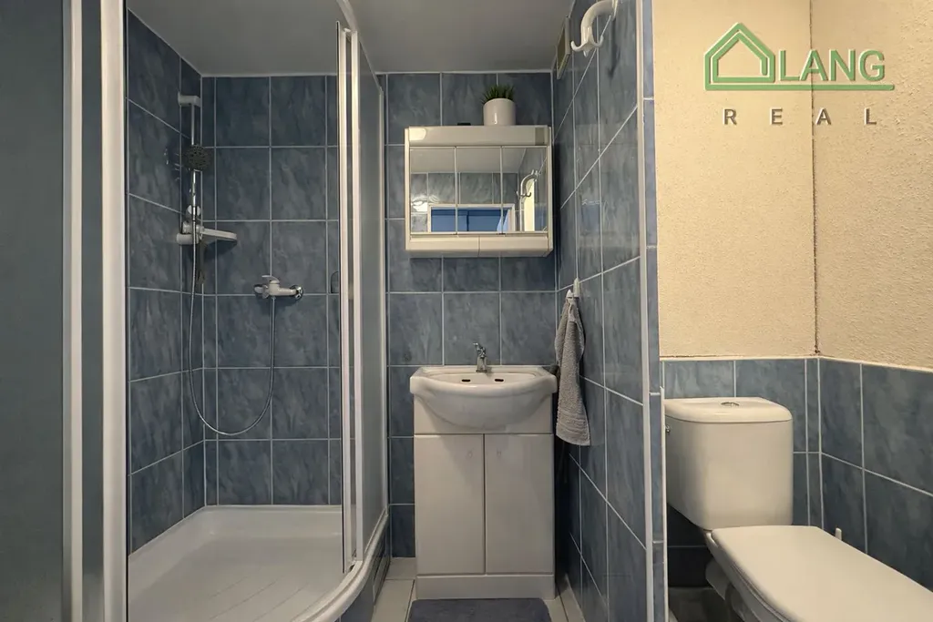 V koupelně je sprchový kout, WC a přípojka na pračku.