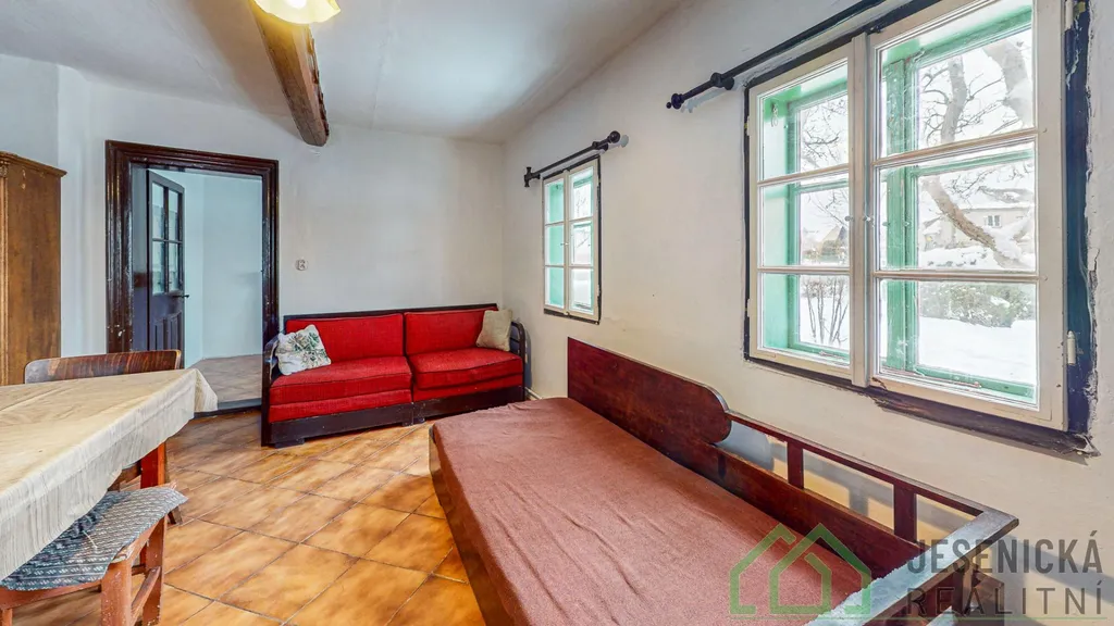 Interiér je pečlivě udržovaný a zachovaný v původním stylu. Každý kout domu vypráví svůj příběh, od kastlových oken s originálním sklem až po krbová kamna, u kterých si lze představit dlouhé zimní večery s knihou a praskajícím ohněm. Dispozice 3+kk nabízí příjemné a funkční bydlení hlavní obytný prostor s kuchyňským koutem a jídelnou, ložnici, menší pokoj pro odpočinek, koupelnu s WC a praktickou technickou místnost. Chodba propojuje vstup do domu se zahradou a zároveň ukrývá vstup do malé dílny.