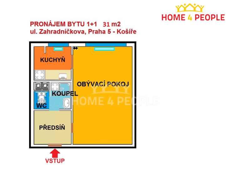 Zprostředkujeme Vám výhradní pronájem bytu o dispozici 1+1 a obytné ploše 31 m². Byt se nachází ve třetím nadzemním podlaží (2.patro) čtyřpodlažního zatepleného cihlového domu bez výtahu v pražských Košířích, v ulici Zahradníčkova. Byt je v osobním vlastnictví a má následující dispozice: kuchyň s oknem, předsíň, koupelna s kvalitním sprchovým koutem a pračkou, samostatné WC, pokoj V bytě je následující vybavení: kuchyňská linka se spotřebiči - lednice, digestoř, el. sporák, pračka, televize, v pokoji masivní dvoulůžko s kvalitní matrací, psací stůl se židlemi, skříně, nové radiátory atd. Na podlaze je položeno PVC, koberce a dlažba. Ohřev vody a topení je řešen ústředním rozvodem z vlastní kotelny v domě (lepší cena než z teplárny). Nová plastová okna se žaluziemi směřují k západu do zeleně za domem. Cihlový dům byl v roce 2016 zateplen a celkově revitalizován - průkaz energetické náročnosti budovy - třída C, byla provedena celková rekonstrukce fasády, střechy, všech rozvodů a chodeb, společenství vlastníků velmi dobře funguje. Je možno užívat společnou kolárnu. Internet je zaveden - O², VODAFONE, T-MOBILE, PE3NYNET. Parkování je bezproblémové před domem - možnost vyřízení modré zóny pro celou Prahu 5. V lokalitě pražských Košíř je veškerá občanská vybavenost: škola, školka, kostel, kino, restaurace, lékař, lékárna, pošta, nákupní středisko. Dále se zde nachází park Homolka, park Cibulka, golfové hřiště Motol, motolské rybníky a koupaliště, tenisové centrum, minigolf atd. MHD - tram č. - 1 min. pěšky; BUS - 5 min.; Metro B - Anděl 10 min, Metro A – Motol 5 min. Je zde krásné a klidné bydlení blízko centra města. Rezervace možná ihned, byt je přípraven k nastěhování od 3/2026!!! Velmi doporučujeme osobní prohlídku. Ev. číslo: 30997.