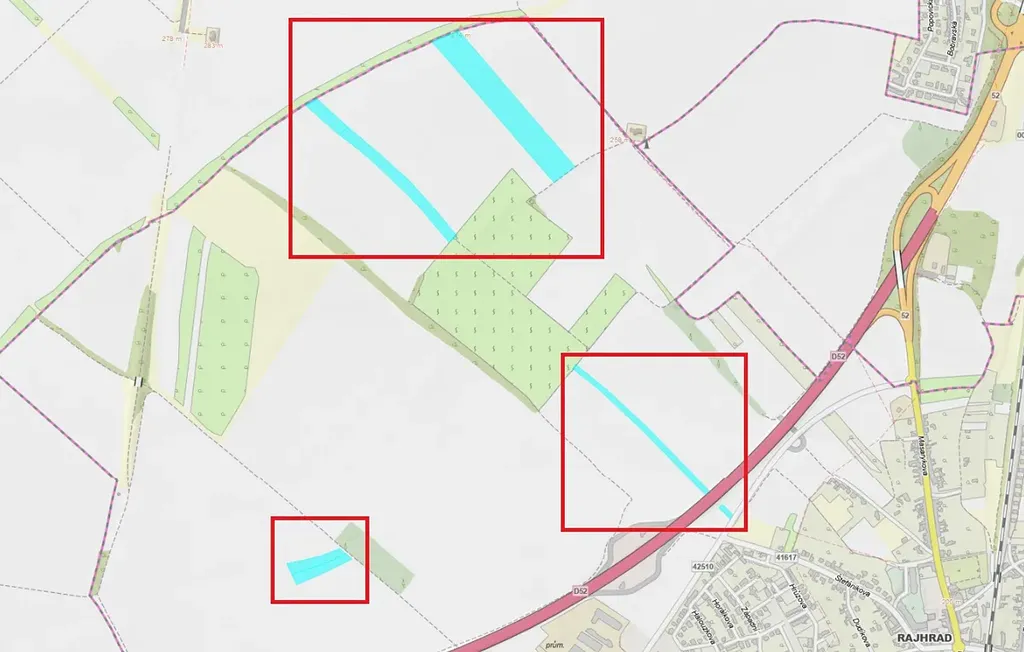 V kú Rajhrad na LV 1267 se jedná o tyto pozemky: