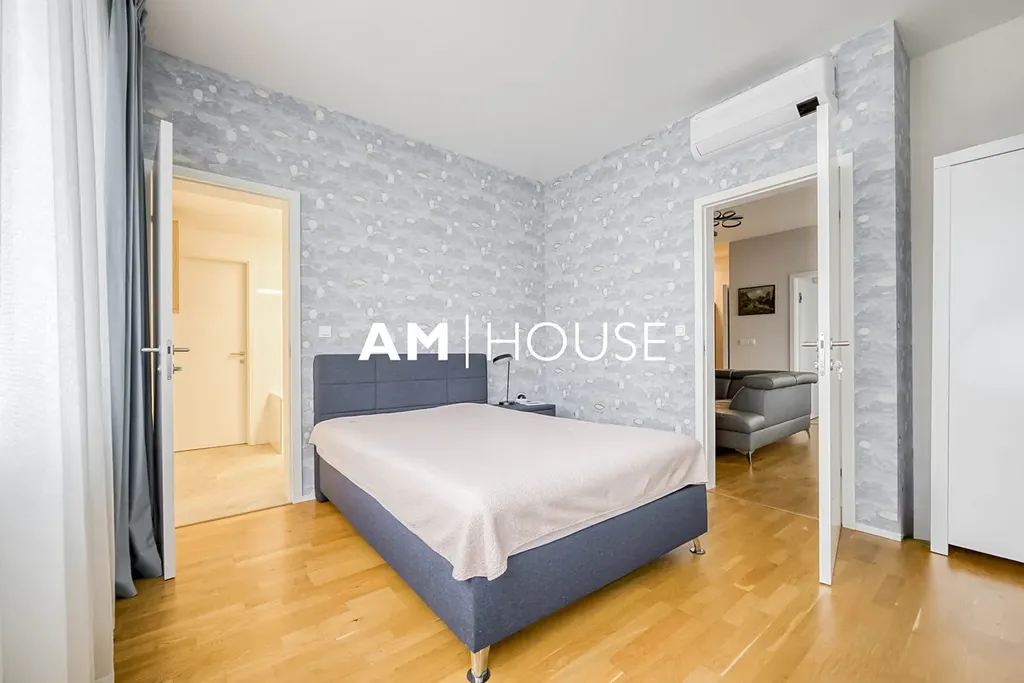 Byt se nabízí jen s vestavěným nábytkem, volné stojící nábytek majitel odveze. Prostorný byt s klimatizace a venkovními žaluzií se nachází v 5. podlaží v novostavbě. Byt disponuje množstvím uložného prostoru v ložnicích a na chodbě.
