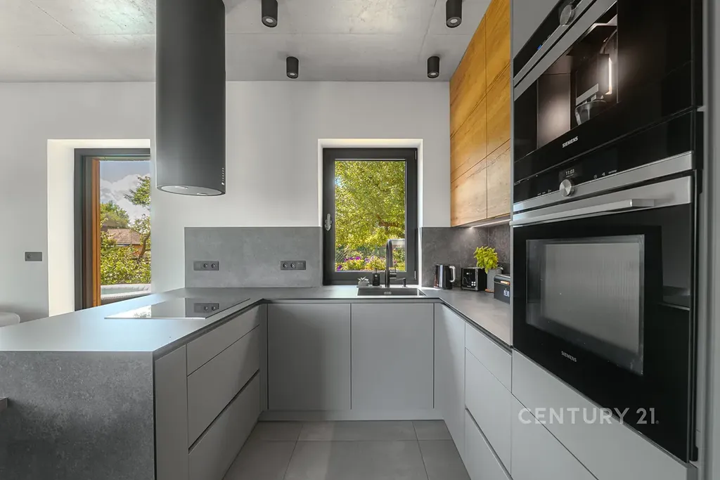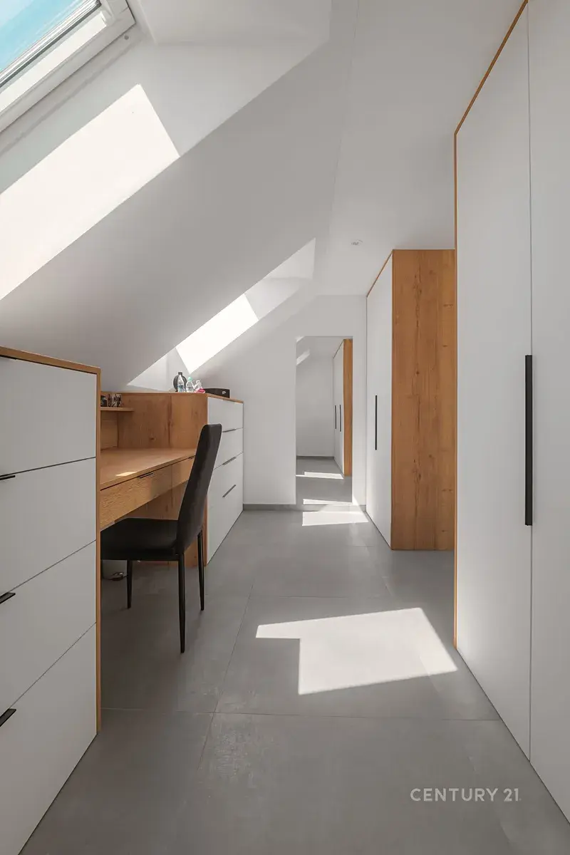 V domě se nachází dvě šatny, jedna spižírna a prostorná technická místnost s dalšími úložnými systémy vše na zakázku, taktéž kuchyňská linka na zakázkovou výrobu s vestavěnými spotřebiči (vč. vestavného kávovaru) vše užíváno s nadstandardní péčí.