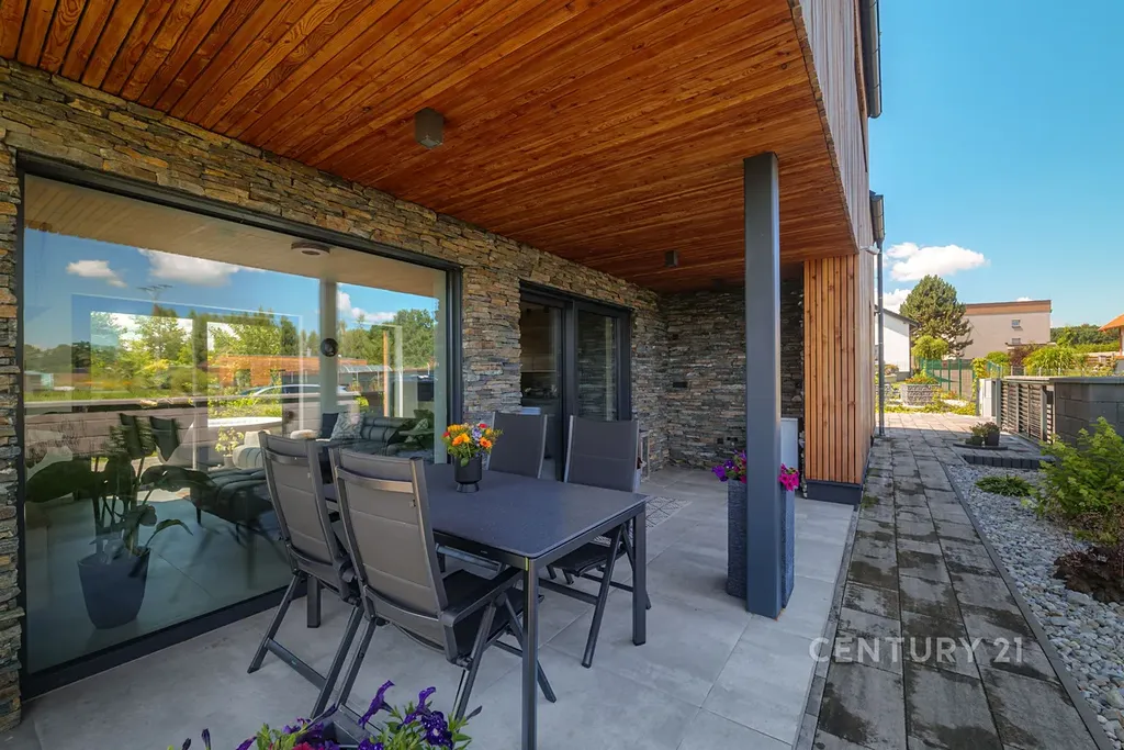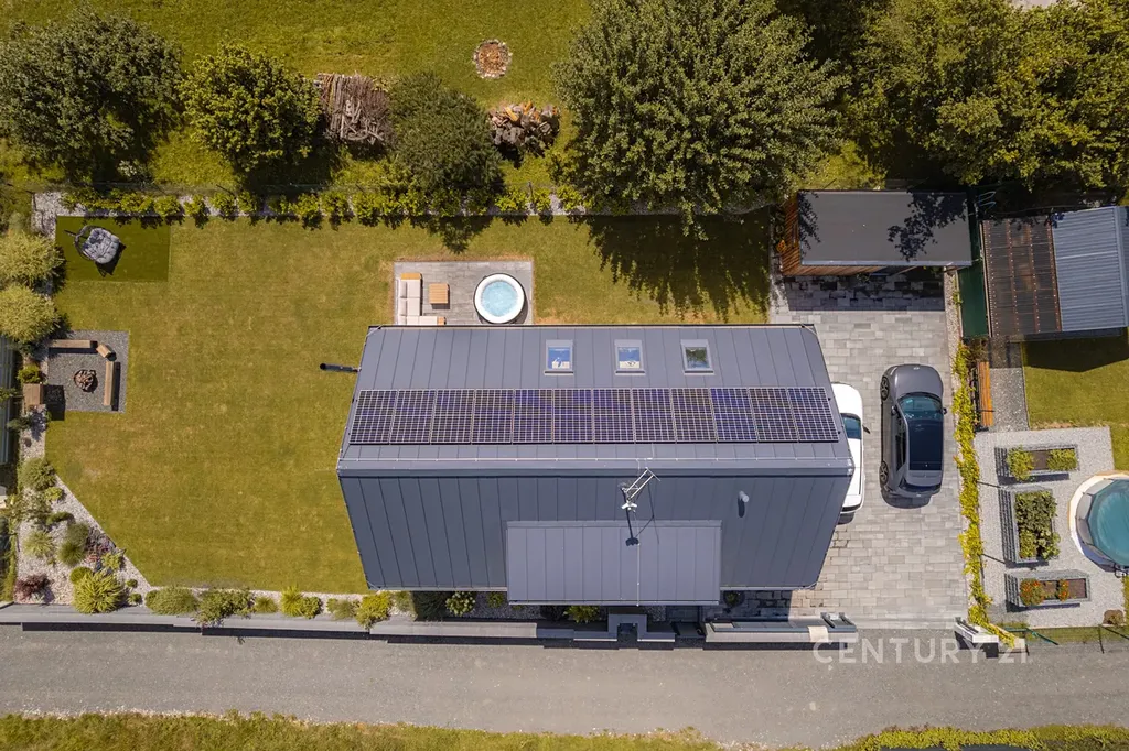 V domě jsou použity nadstandardních prvky, technologie a interiérového vybavení, které výrazně zvyšují komfort bydlení, estetickou hodnotu i energetickou soběstačnost. Dům disponuje FVE (12 panelů), tepelným čerpadlem a krbovými kamny, což zajišťuje nadstandardní energetickou soběstačnost. FVE GoodWe – výkon 4,5 kW, baterie 7,1 kWh, střídač 8 kW, tepelné čerpadlo Neoré 8GT (voda–vzduch) s funkcí podlahového vytápění a chlazení, Wallbox GoodWe 22 kW pro nabíjení elektromobilu.