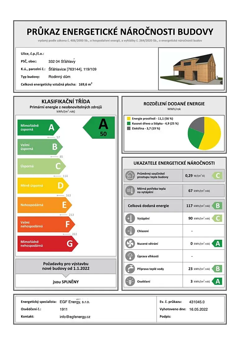 | Třída energetické náročnosti | A - Mimořádně úsporná |
