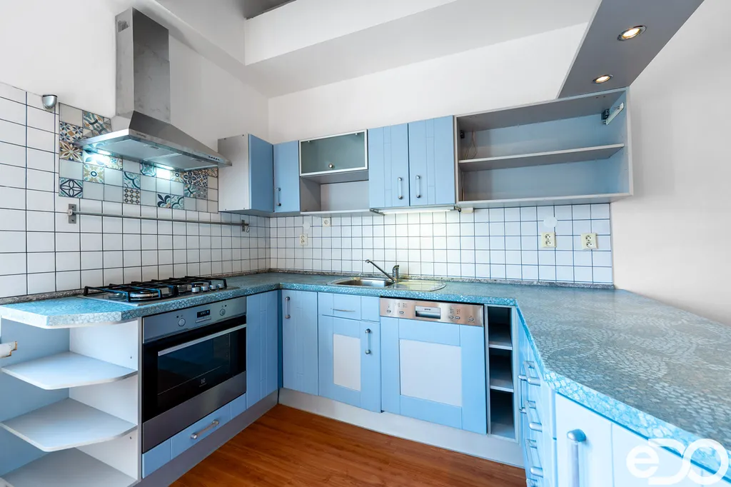 Byt sestává z obývacího pokoje orientovaného na jih, propojeného s kuchyňským koutem, který je oddělen příčkou. Kuchyň je vybavena sporákem, digestoří a myčkou. Nad kuchyní se nachází vyvýšené spací patro se šatnou – ideální pro klidný spánek i praktické uložení věcí.